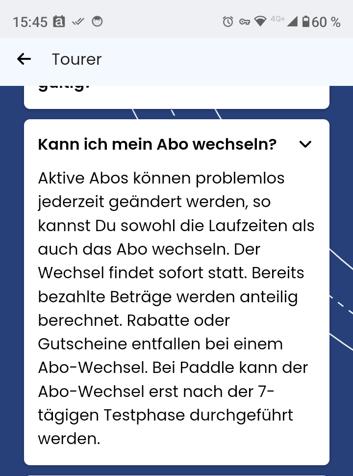 In den FAQ hatte ich natürlich nach einer Antwort auf meine Frage gesucht, aber unter DIESER Überschrift hätte ich sie jetzt nicht vermutet, denn DASS ich das Abo wechseln kann, wusste ich ja ![]()