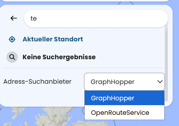 GraphHopper and openrouteservice are the data bases available for searching.