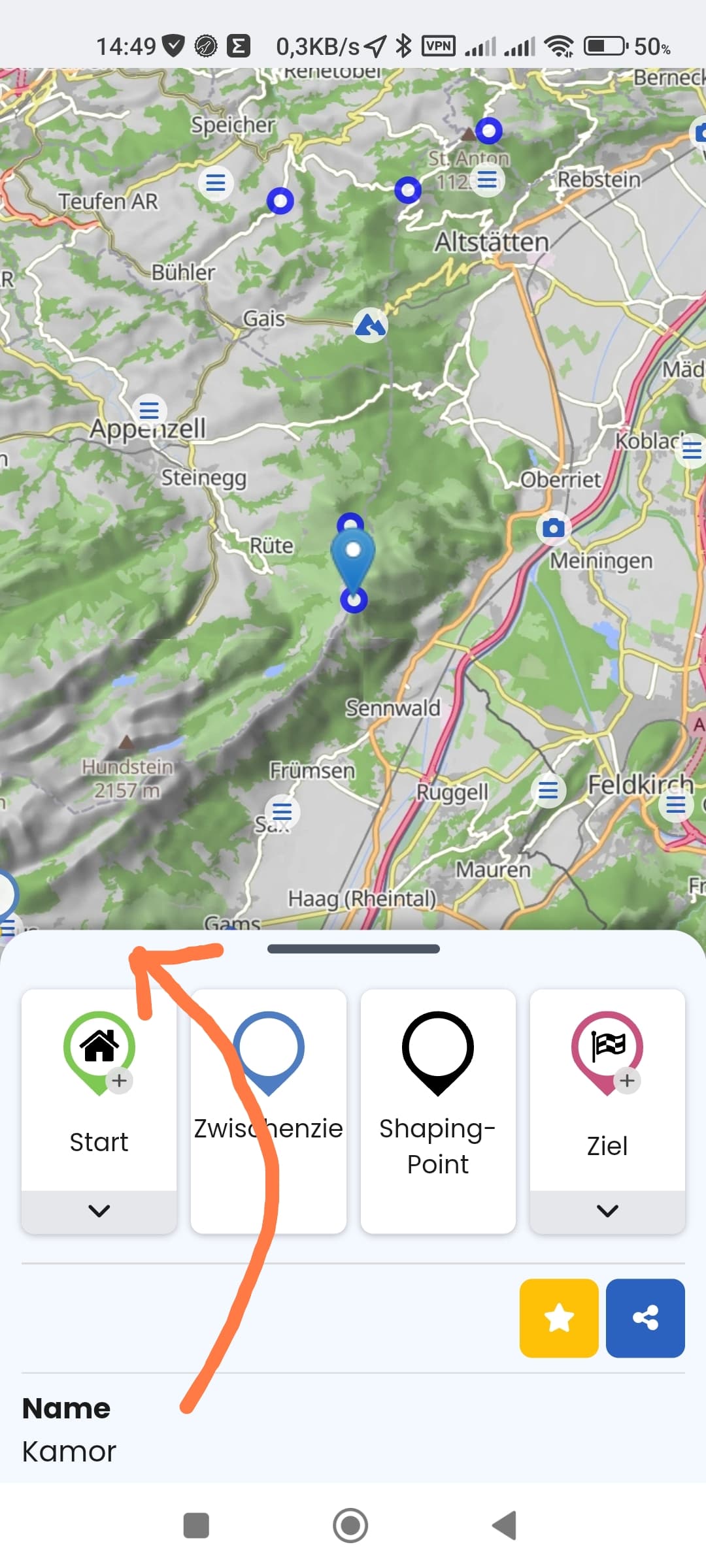 OK, jetzt hab ich es kapiert. Ich dachte es funktioniert nicht, weil nur die 4 Möglichkeiten den Punkt zur Route hinzuzufügen erscheinen und man das dann etwas nach oben ziehen muss um den POI-Namen aus der GPX-Datei zu sehen.