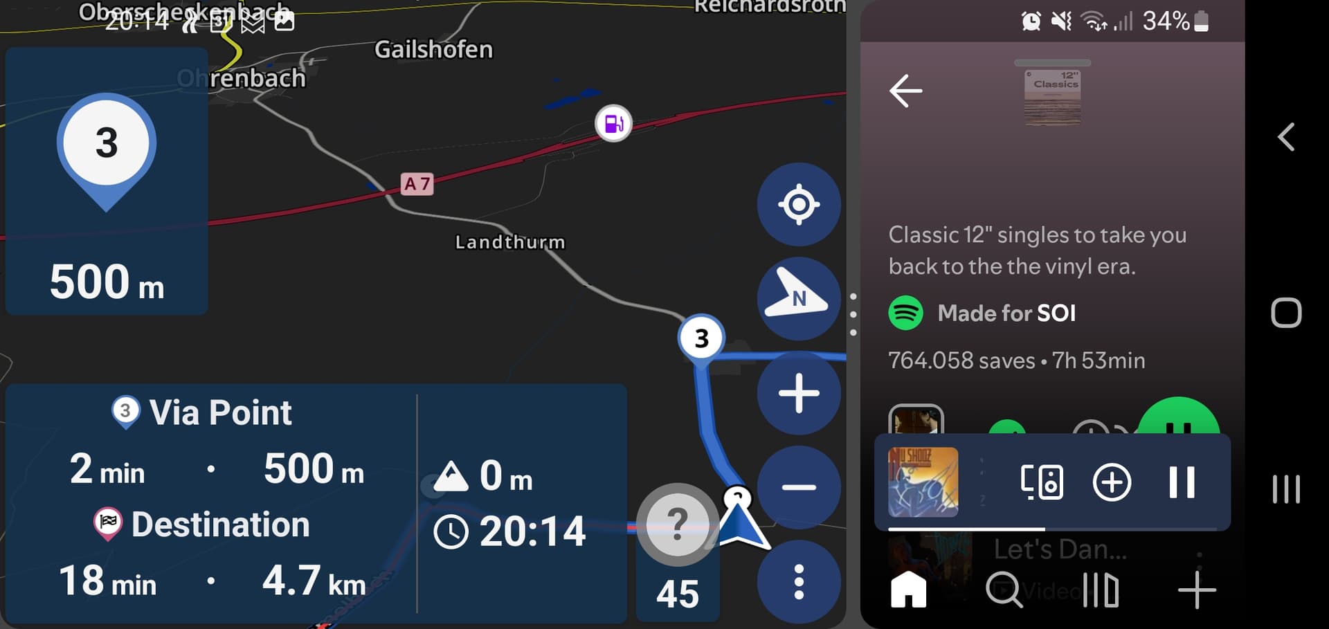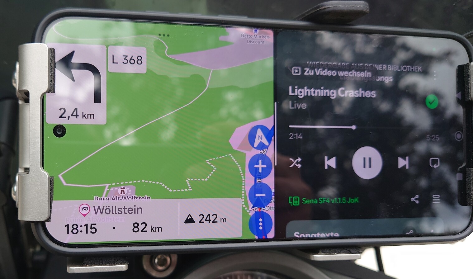 I’m using an Android Phone (Poco F7) for Navigation in Landscape orientation/often in Split screen setting (Phone just allows for 50/50, I would prefer 2/3-1/3). With this setting on Kurviger Display my actual position (Arrow) and the route ahead are always shown on the very low right corner of the Screen, often completely hidden by the menue buttons. This renders the display mainly useless, see foto.
