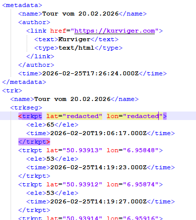 in der GPX Datei sieht es ganz schräg aus.