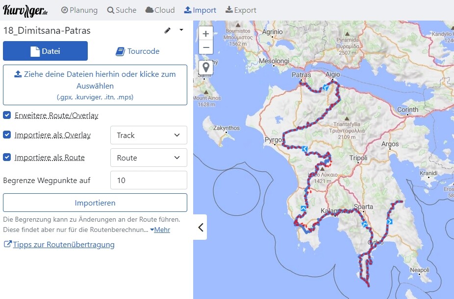 es gibt Einschränkungen bei “nicht Kurviger” Format, denn sehr schnell kommt man über 250 Punkte die unterstützt werden