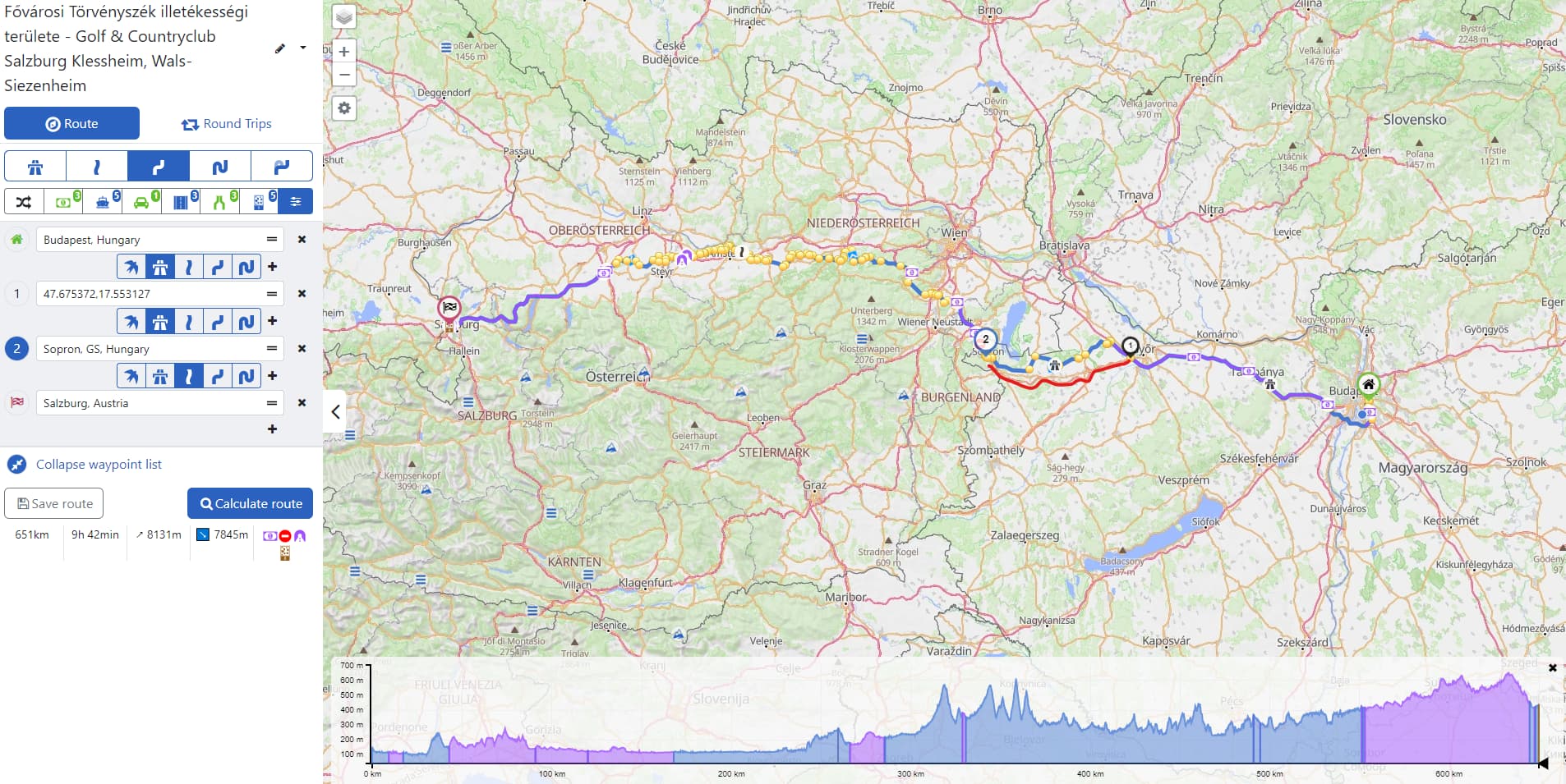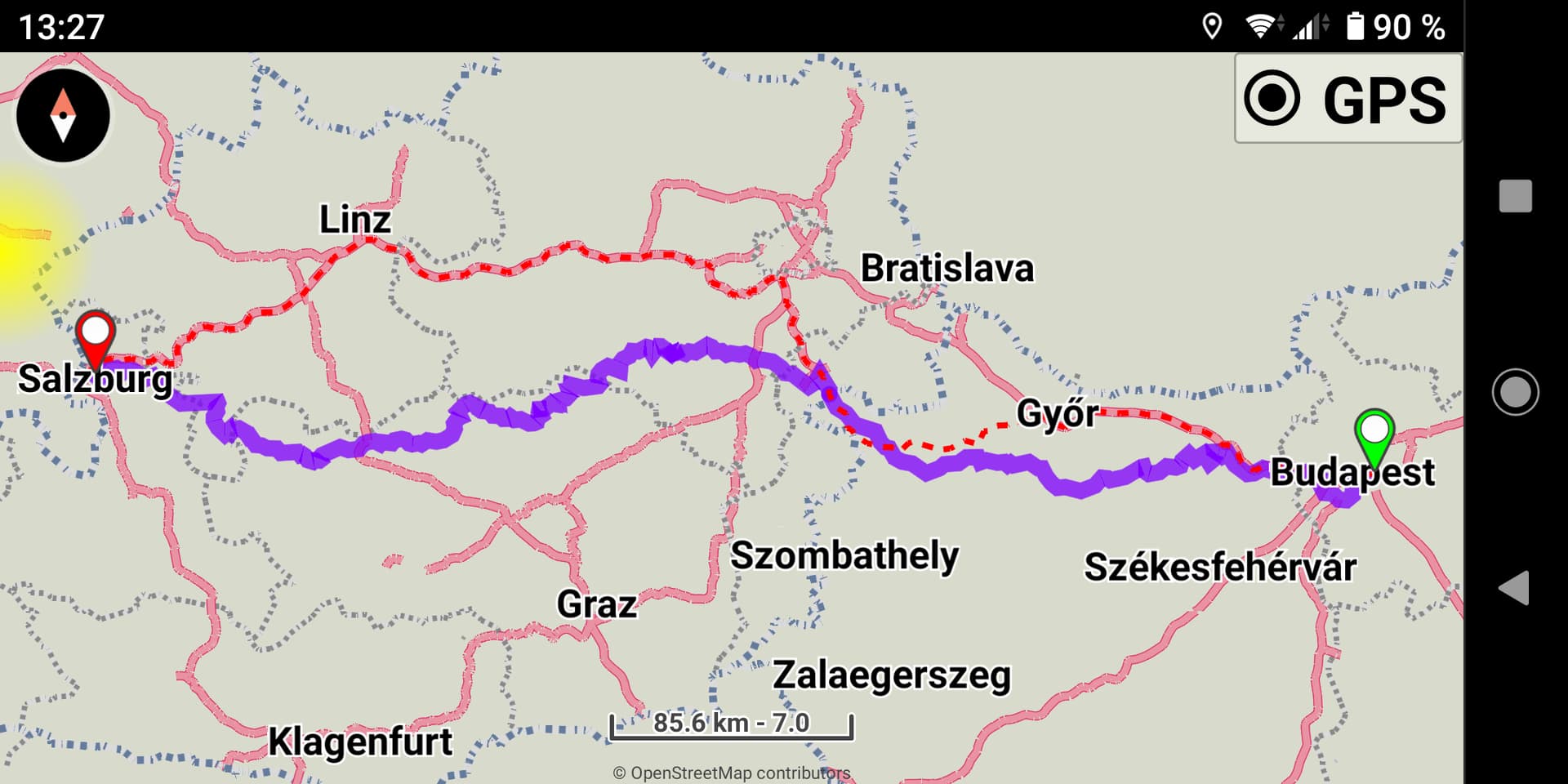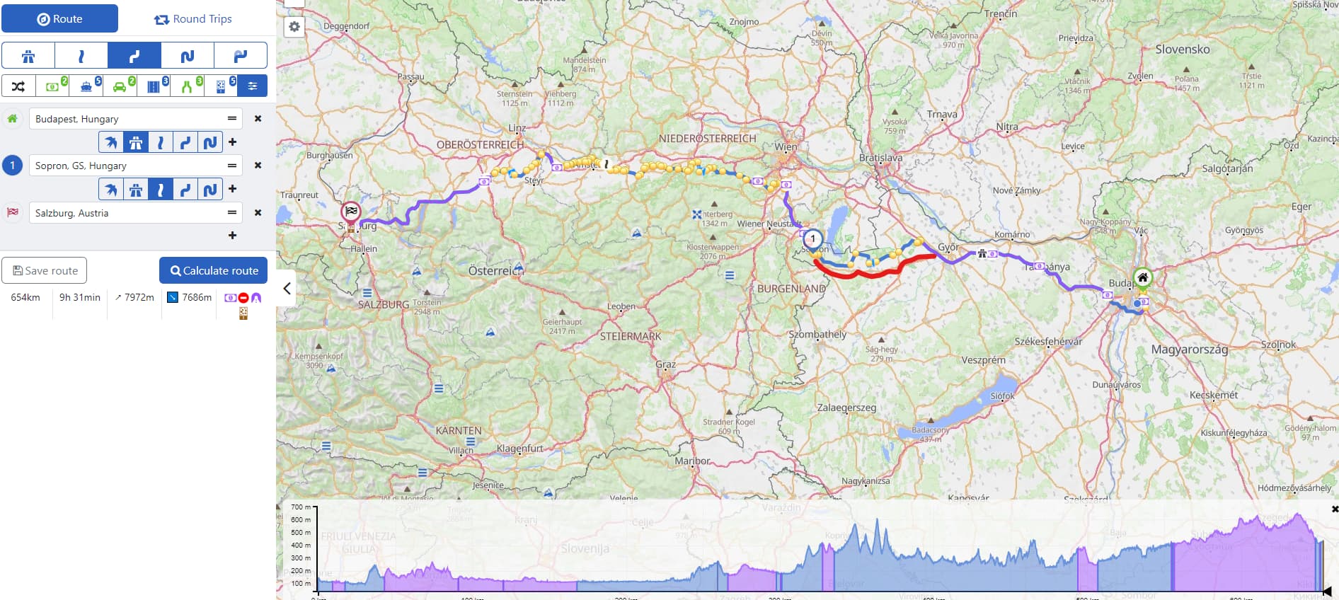 Budapest-Sopron: Motorways, Sopron-Salzburg: Fast and curvy route. Strength of Avoid toll roads: 2