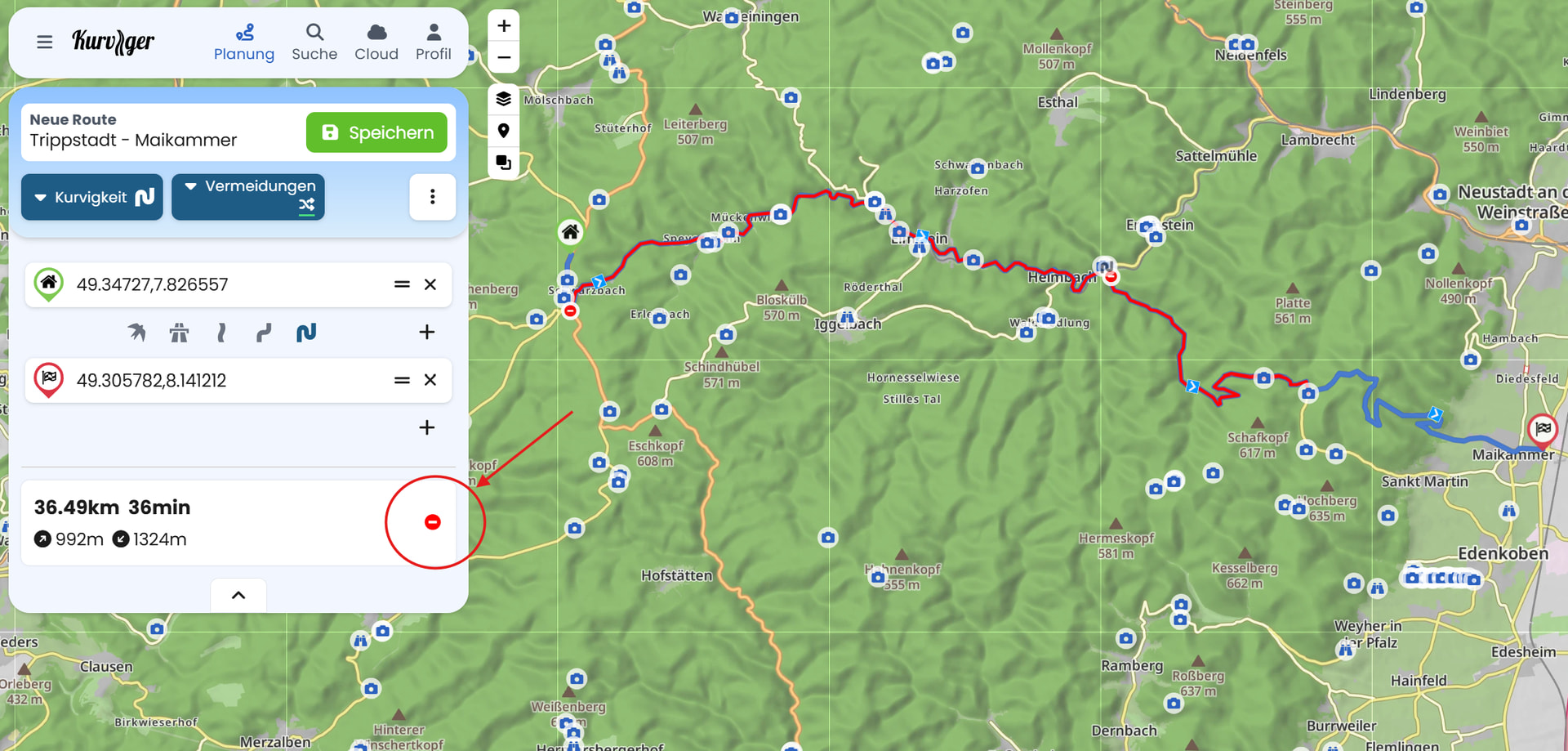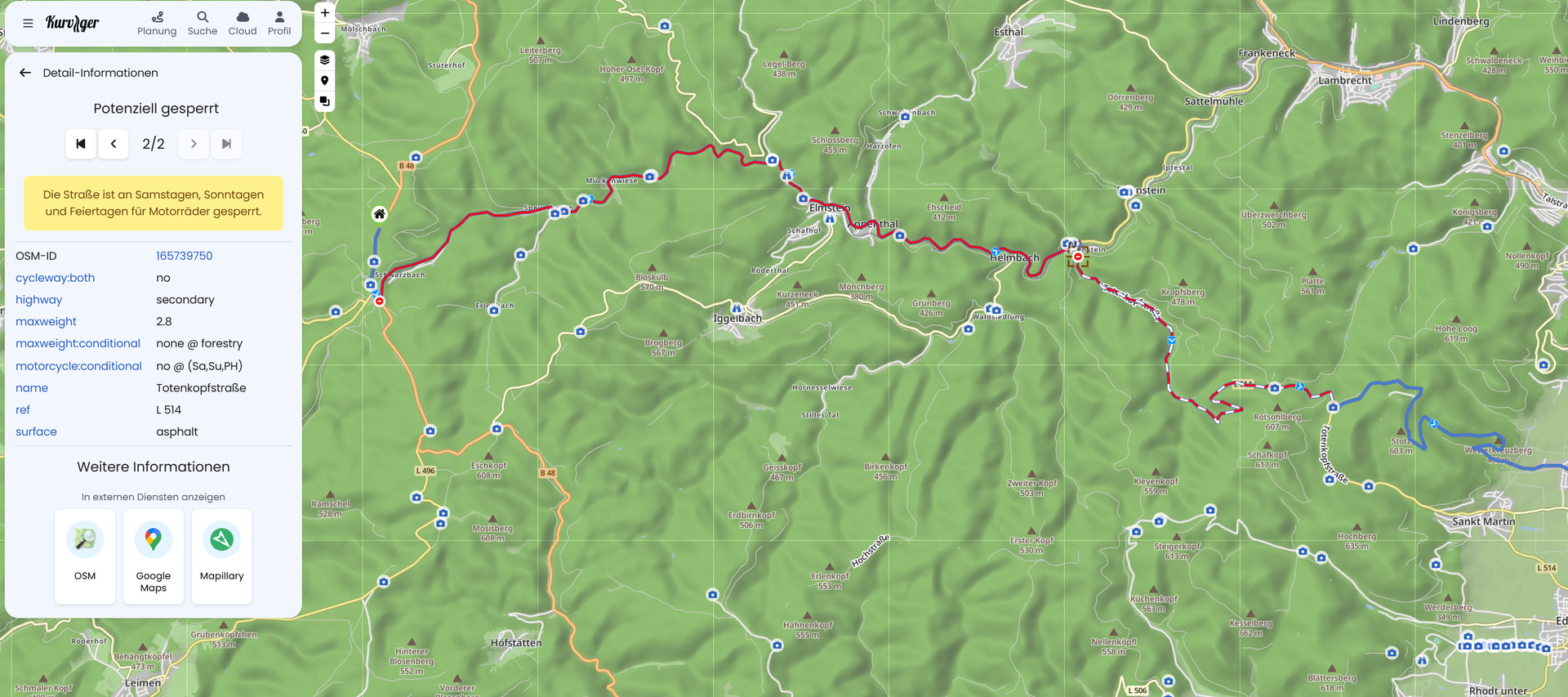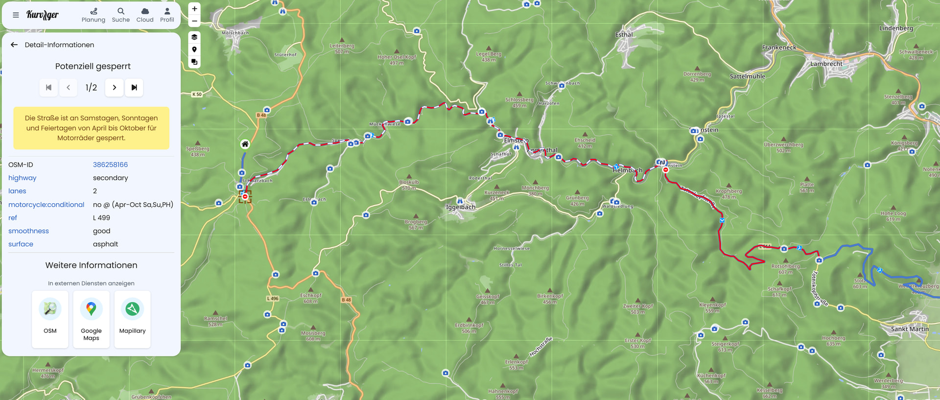 Ich bin nur mit der App unterwegs auch spontan. Ich gebe da ein Ziel ein, lasse mich kurvig oder kurvig+schnell routen, und dann führt mich kurviger eben gern auf aktuell gesperrte Strecken. Das möchte ich selbstverständlich nicht.
