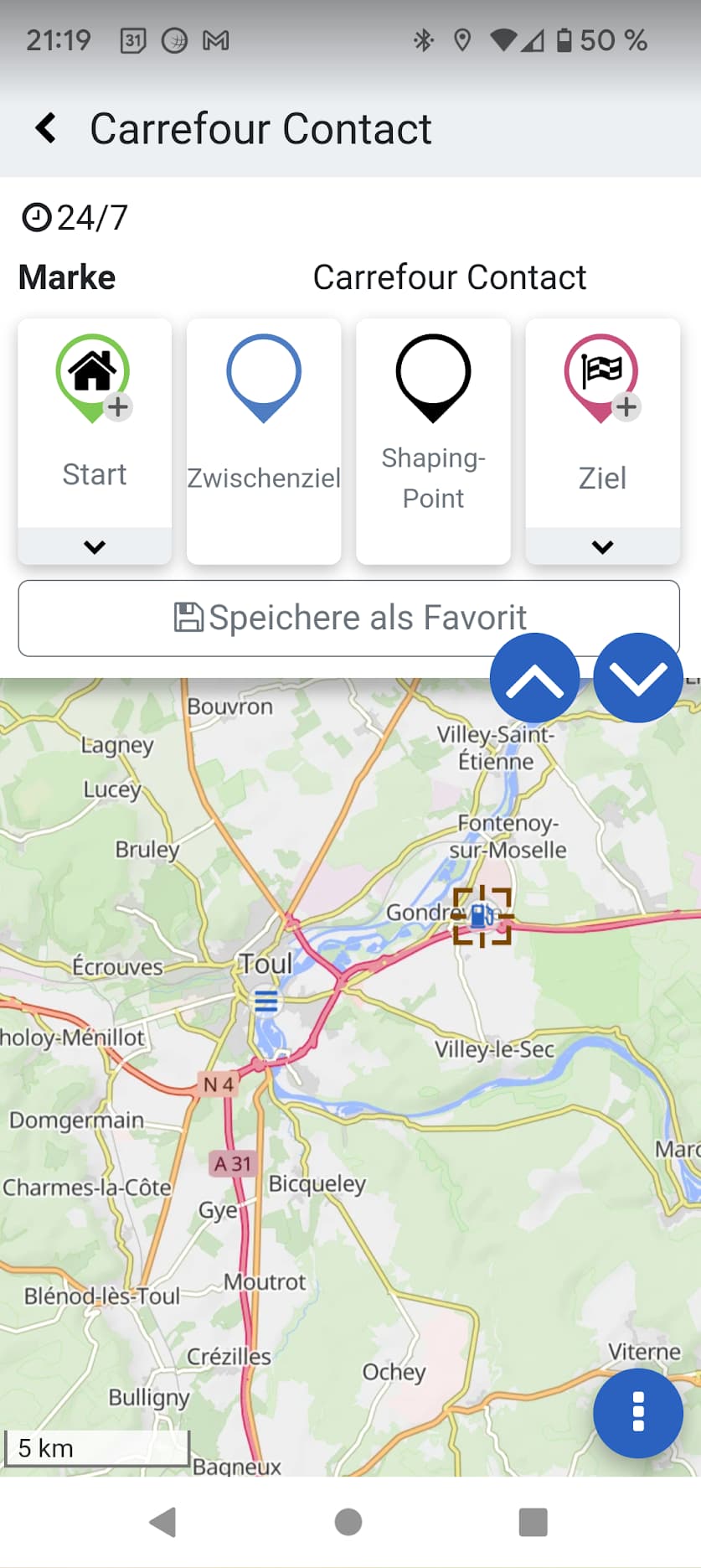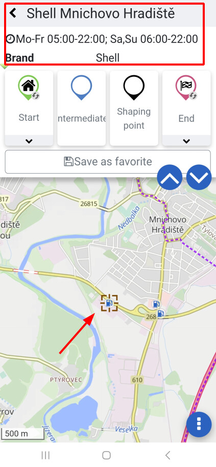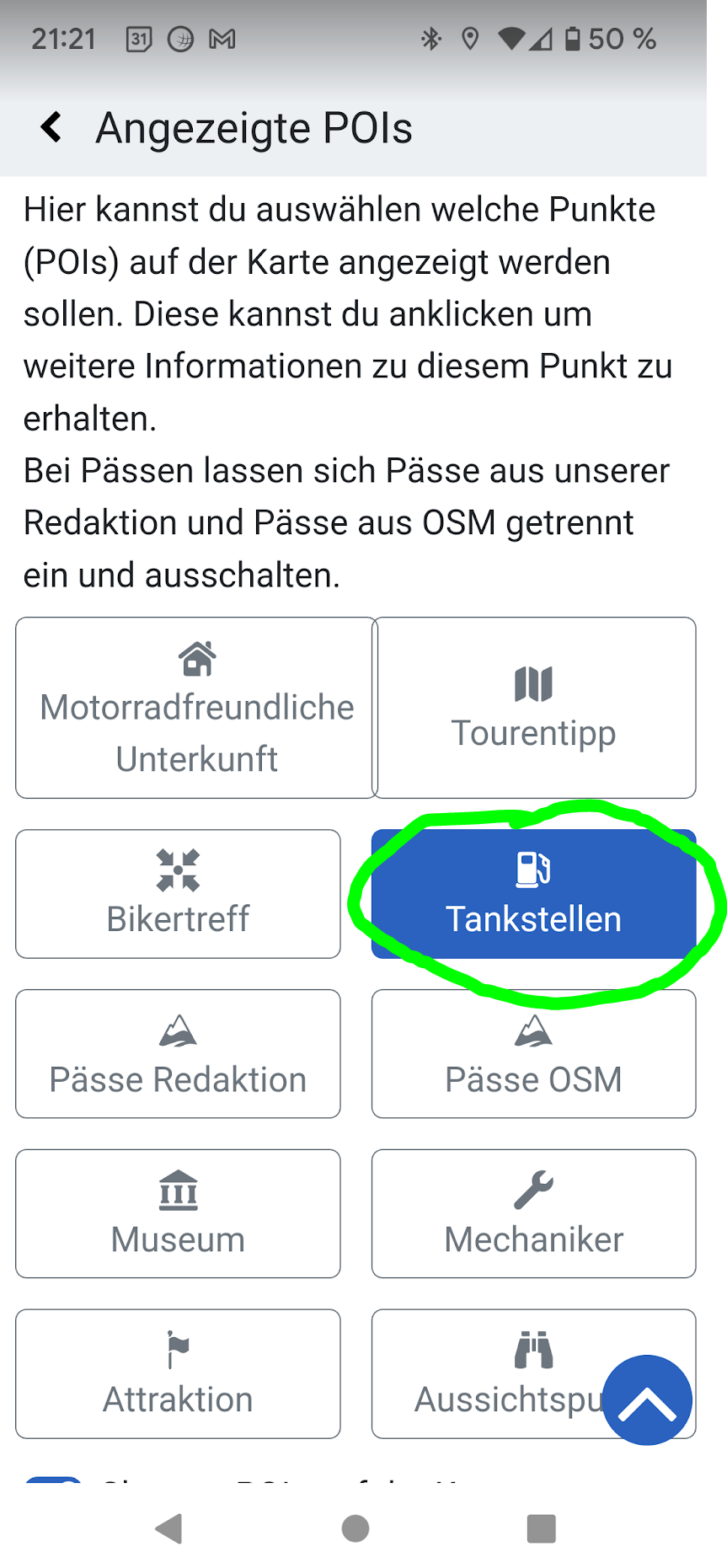 Si tu tapes ensuite sur la station-service dans l’application Kurviger (important : terminer la navigation avant !), tu obtiens une indication sur le type de station-service