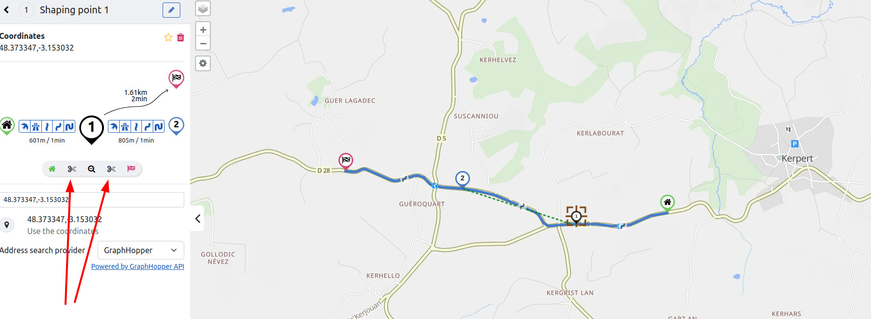 I didn’t dare try on a walk, but when I create a route at home by placing the start further away with forward waypoints and I launch it, it wants to take me to the previous points. Maybe it’s only when we start rolling that he cancels the other points? I’ll give it a try then.