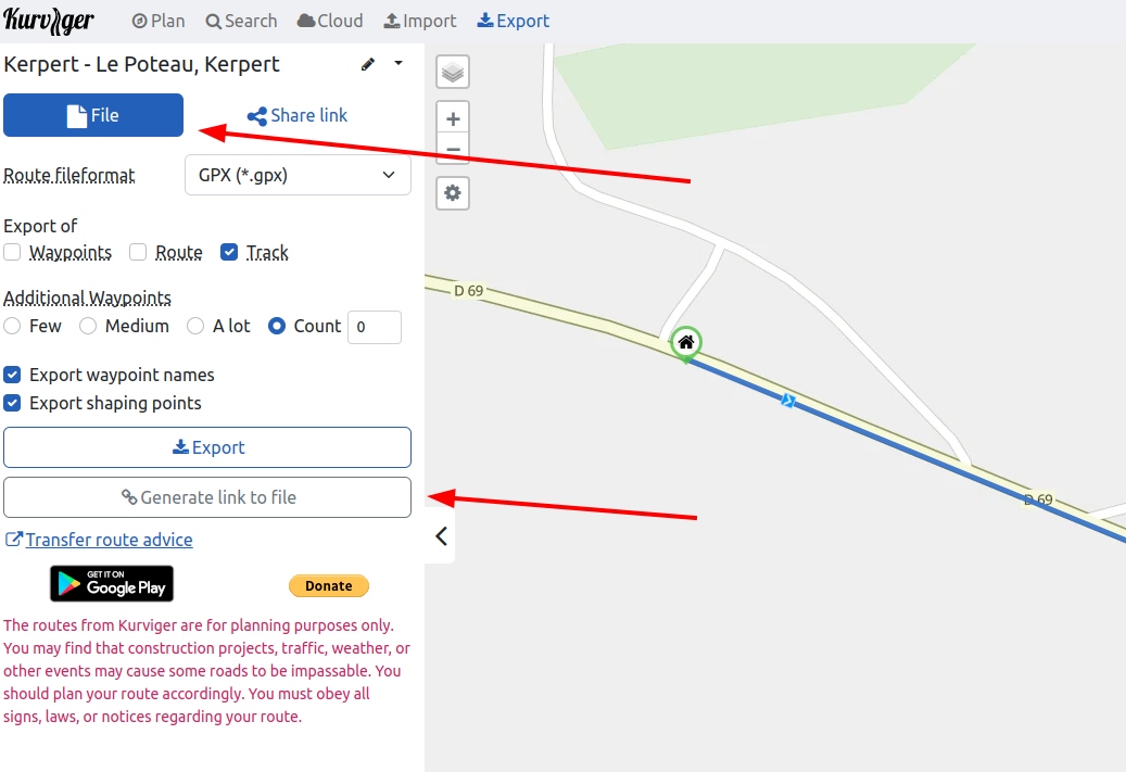 En général, il est préférable d’enregistrer l’itinéraire planifié dans le cloud :