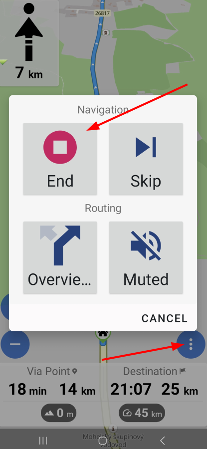Il est bien sûr possible d’arrêter la navigation, appuie sur le bouton avec les 3 points dans la partie inférieure droite pendant la navigation et sélectionne ‘Quitter’.
