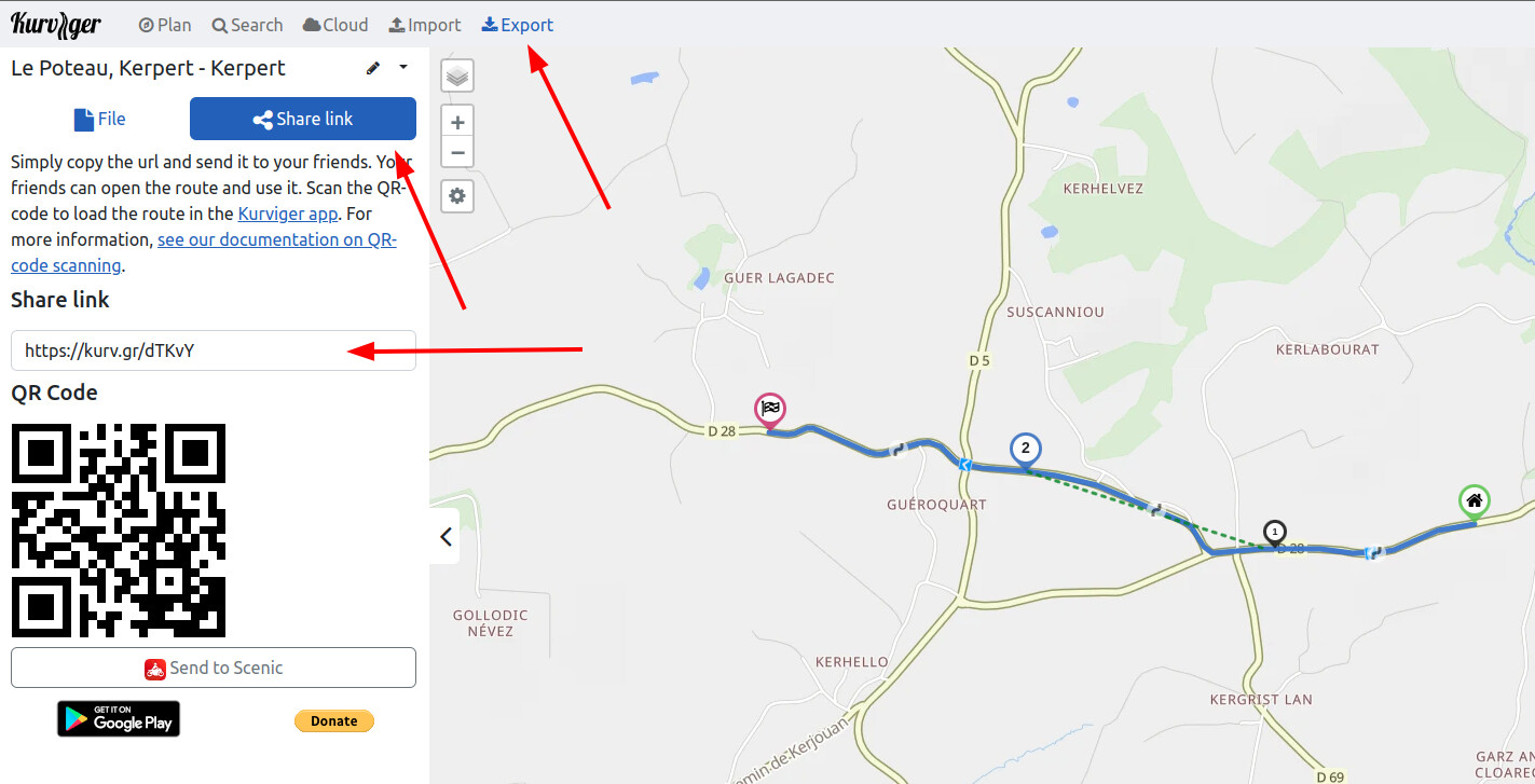 I have always used Calimoto for my region and am looking for a free application for the whole of France for a road trip this summer. I tried kurviger the other day but there are some issues that bother me for a long ride, maybe it’s a misunderstanding on my part so here’s what I found: