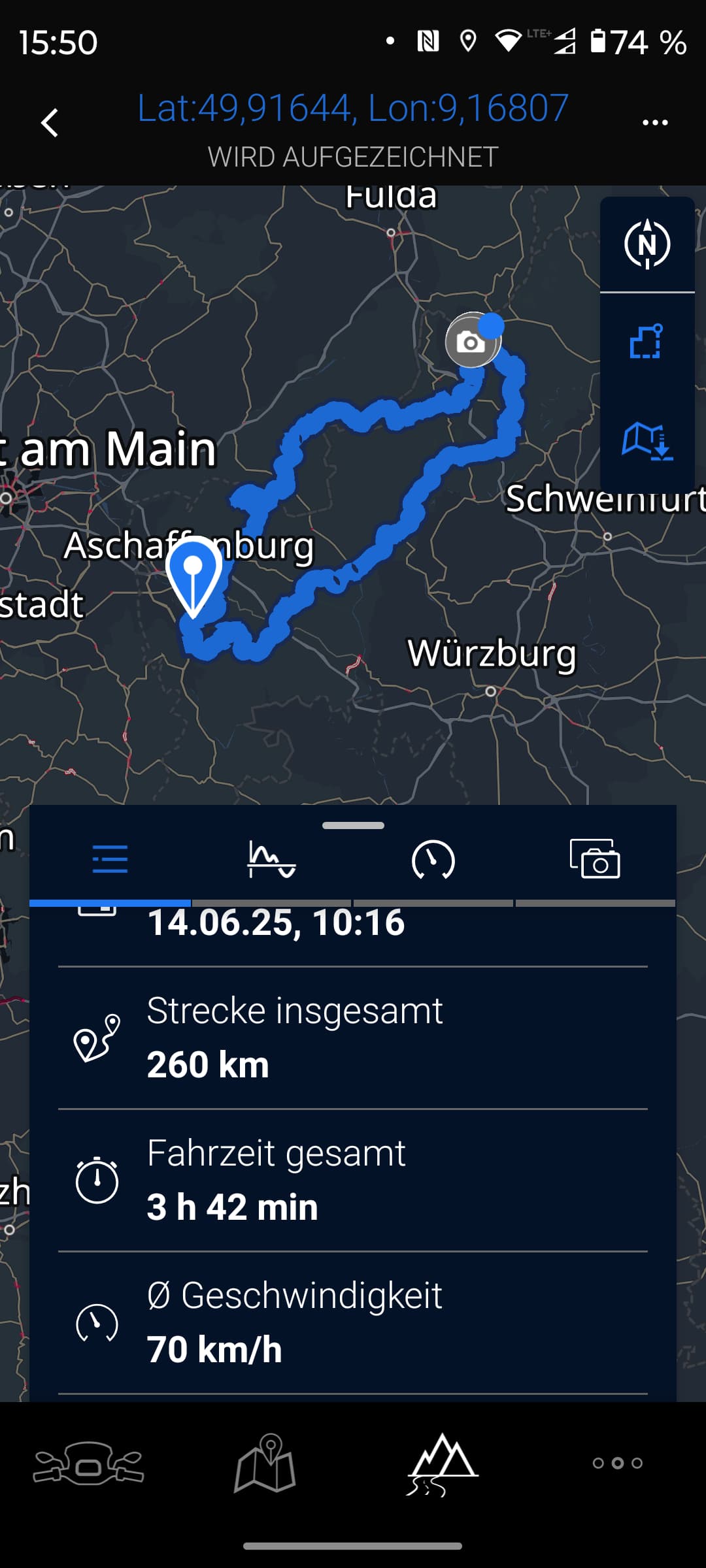Habe heute eine Tour von 326 km absolviert, Laut kurviger Rutenplanung 6.40 Std.