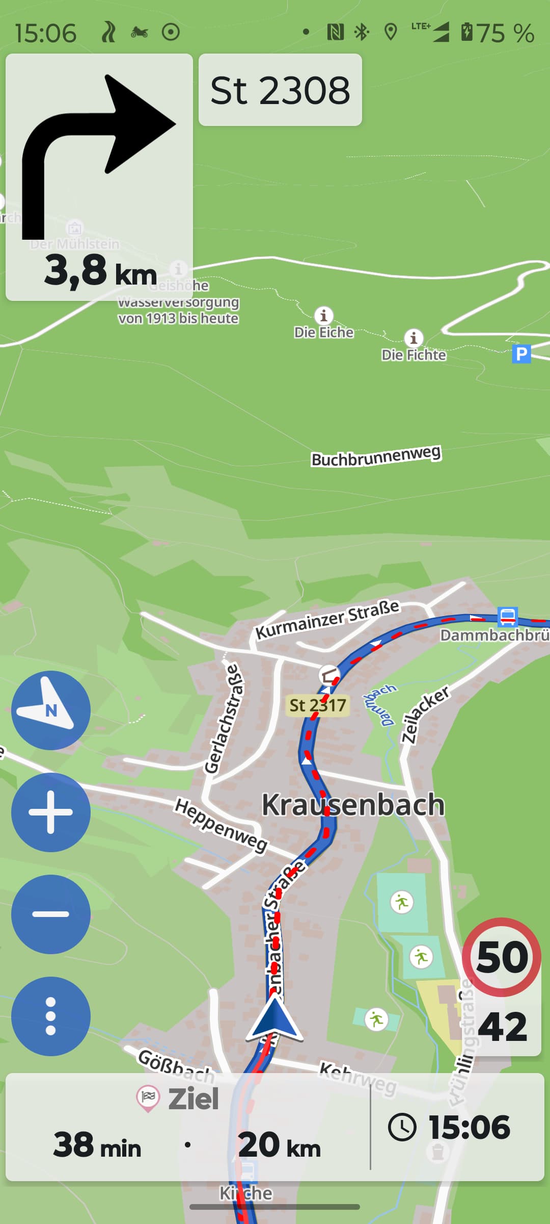 Ich habe das Gefühl, daß die Berechnung in Kurviger “früher” exakter gepasst hat. Wie gesagt, Minuten interessieren nicht, aber wenns Stunden abweicht. Auch das letzte Bildchen (bei uns im Ort) 1,5 km - 10 Minuten. Maps gibt 2 Minuten an, Fahrrad 5 Minuten.