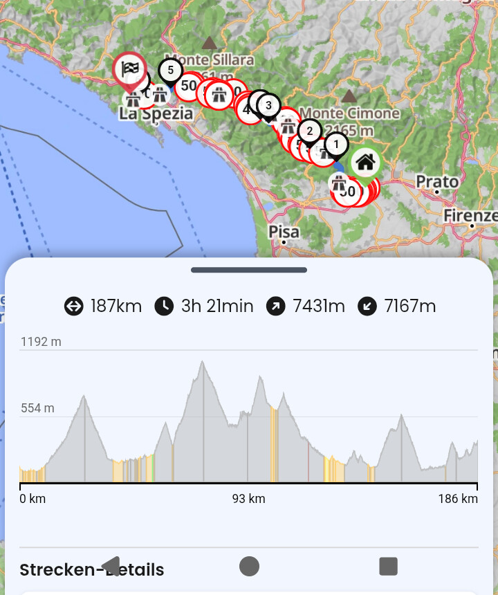 Erst heute wieder in den Bergen erlebt 3 Std. Kalkulation - 4:15 benötigt (195km)