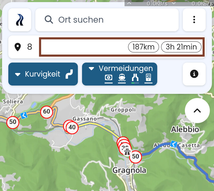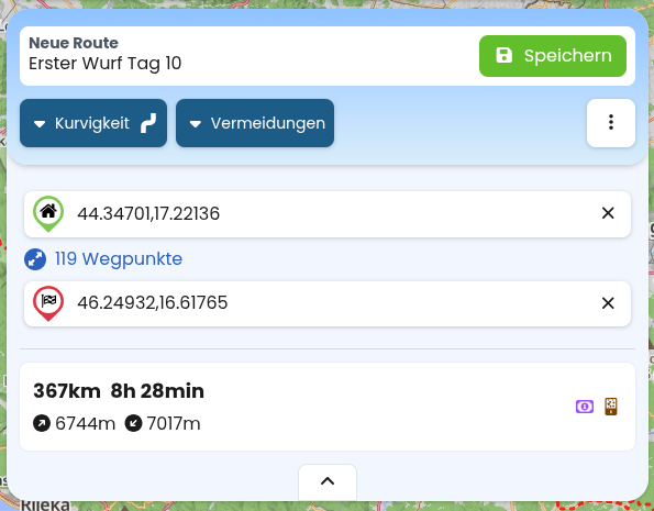 Bei mir “trödelt” Kurviger im ersten Beispiel eher, und ich übertrete die vorgeschriebene Geschwindigkeit eher selten, nur wenn’s muss.