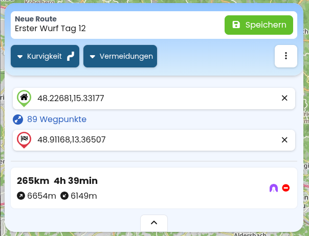 So könnte ich mir das vorstellen Route wird berechnet wie gehabt