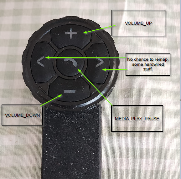 I have bought this for the bicycle. In combination with the app ButtonMapper I could figure out the keys, this remote sends. The volume buttons must be remapped, as you and Robin already said.