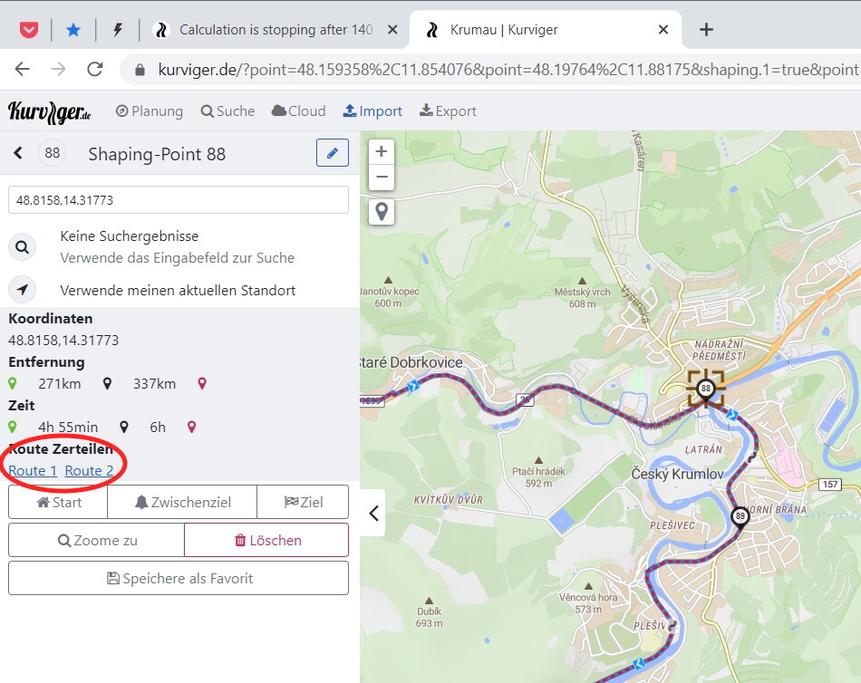 Probably the length of the URL, where each waypoint is listed with name, is the limit. So? I would simply split the route - with my example here:
