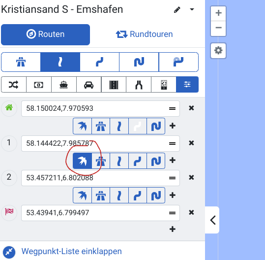 can I “force” a certain ferry crossing? I am working on a plan to the Nordkapp and back to NL and want to take a ferry from Kristiansand to Eemshaven on the way back.