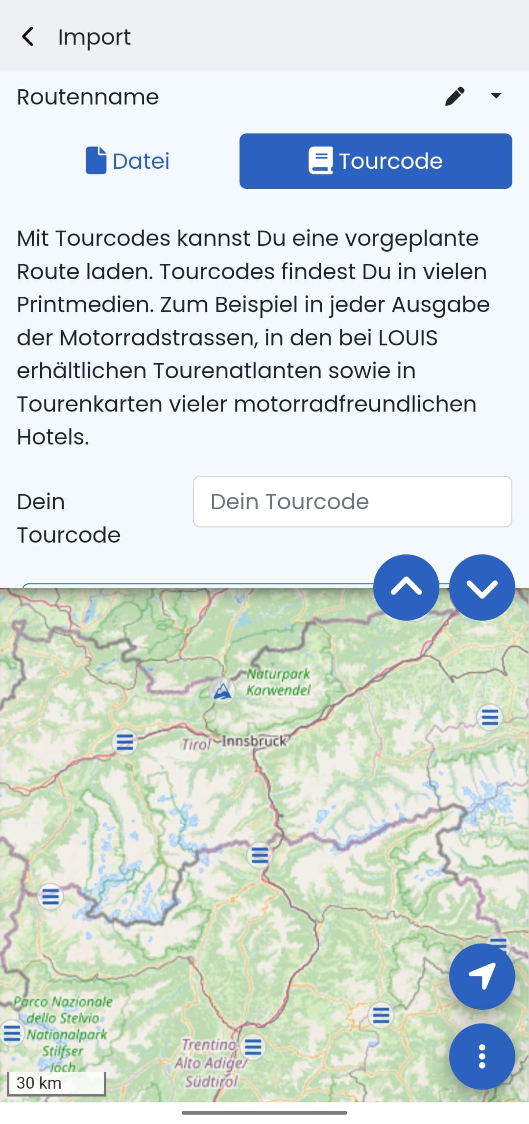 Ich meine mit TOURCODE den Code, den man bei IMPORT eingeben kann, um dann direkt die Route angezeigt zu bekommen.