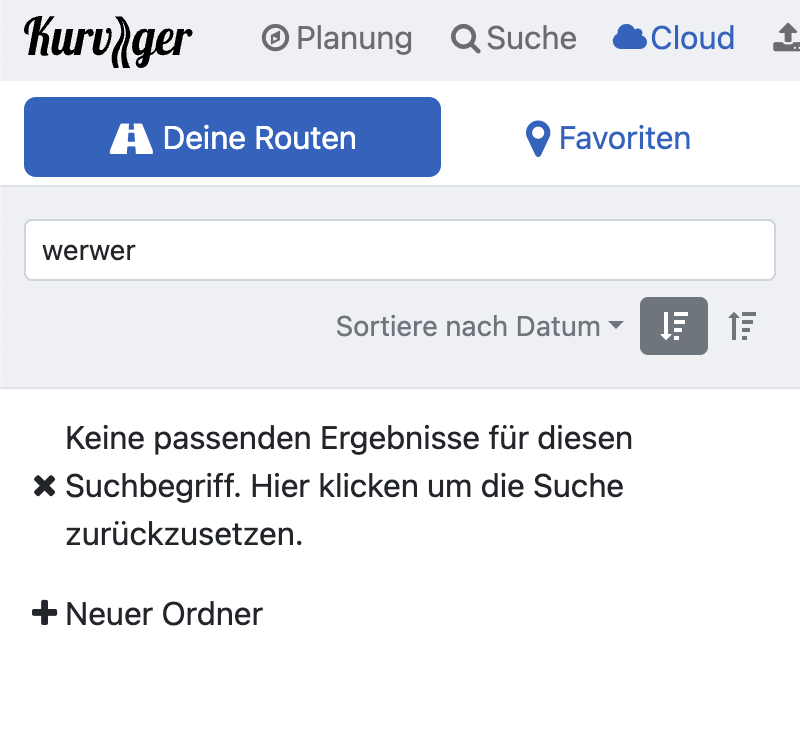 Hi, the following issue: if I open the Kurviger website and log me in and open the cloud with my routes I can’t find a folder I created some weeks ago. It simply is not there. If I open a website called “Kurvenkoenig” and go to “Tourenplaner” the folder exists.