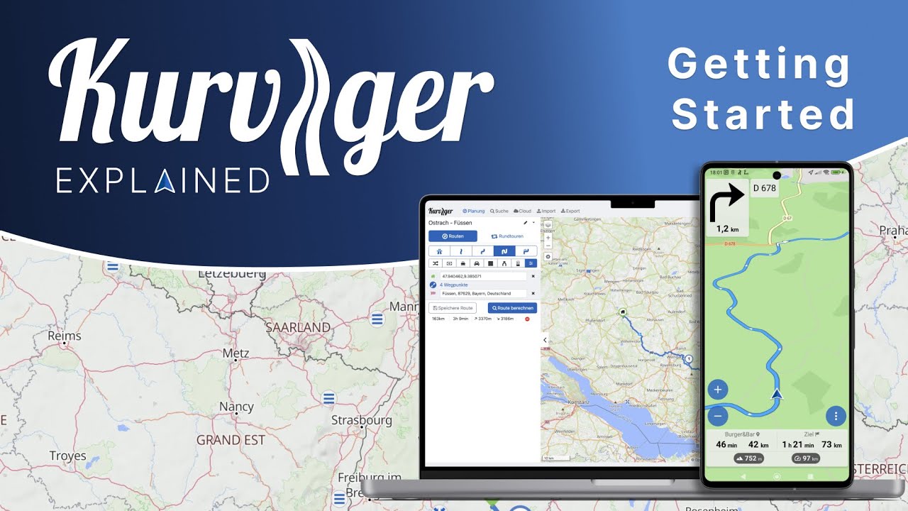 Tu dois d’abord planifier un itinéraire ou au moins saisir une destination avant de pouvoir naviguer avec Kurviger. Voici deux vidéos qui expliquent les bases, tu peux régler les sous-titres sur la langue française dans YT, cela devrait alors fonctionner pour la compréhension ![]()