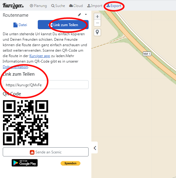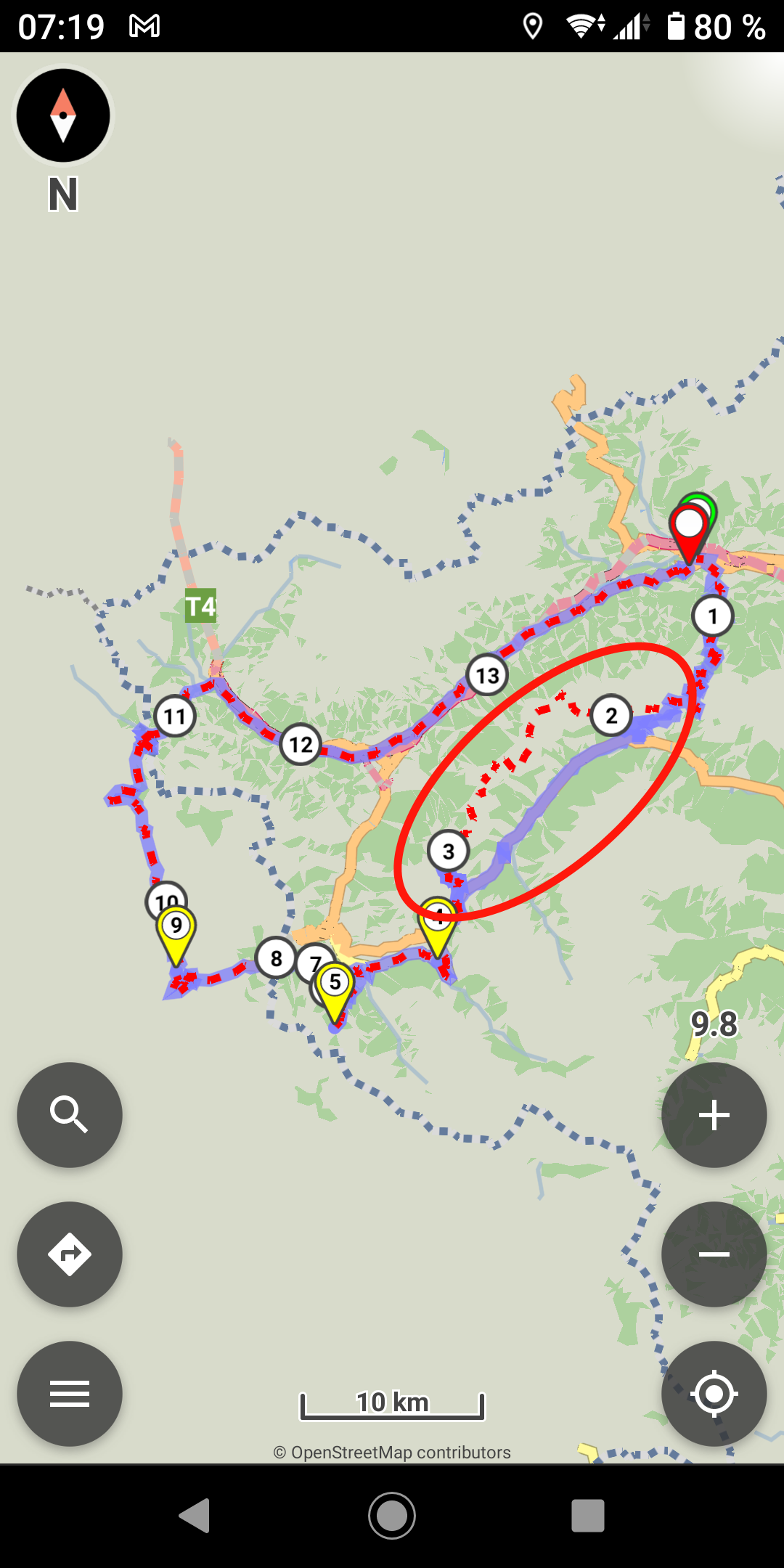 i created in Kurviger pro on the Handy a route over Assietta. When i import the route in Windows, the overlay goes over Assietta, but not the route.