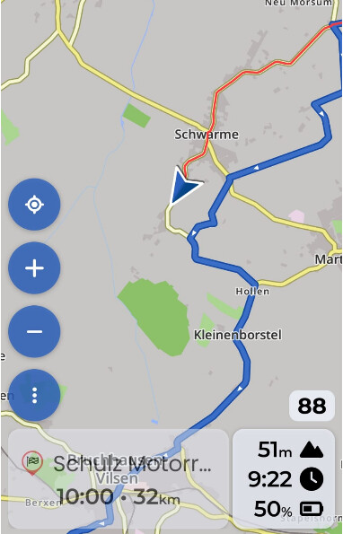 Wenn die Zeit nicht weiterläuft, dann würde ich zurück auf der Route ggf. von einer viel längeren Ankunftszeit überrascht werden. So habe ich zumindest einen Daumenwert im Blickfeld.