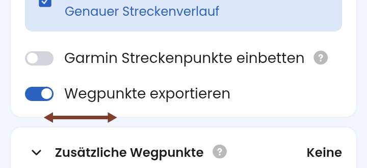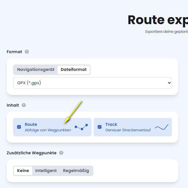 Okay, thanks for clarifying. Unfortunately, I haven’t been able to reproduce it yet. Could you perhaps describe exactly what steps you take during the export? Which format/device do you select, which settings do you choose, etc.? Are all Waypoints missing (so only start and end still in the file) or only Shaping Points, Waypoints or the additional waypoints from the export?