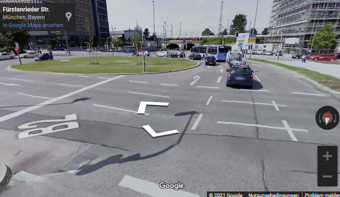 Hier die Gegenrichtung. Obwohl dort auch eine separate Abbiegespur ist, erfolgt dort keine Ansage.