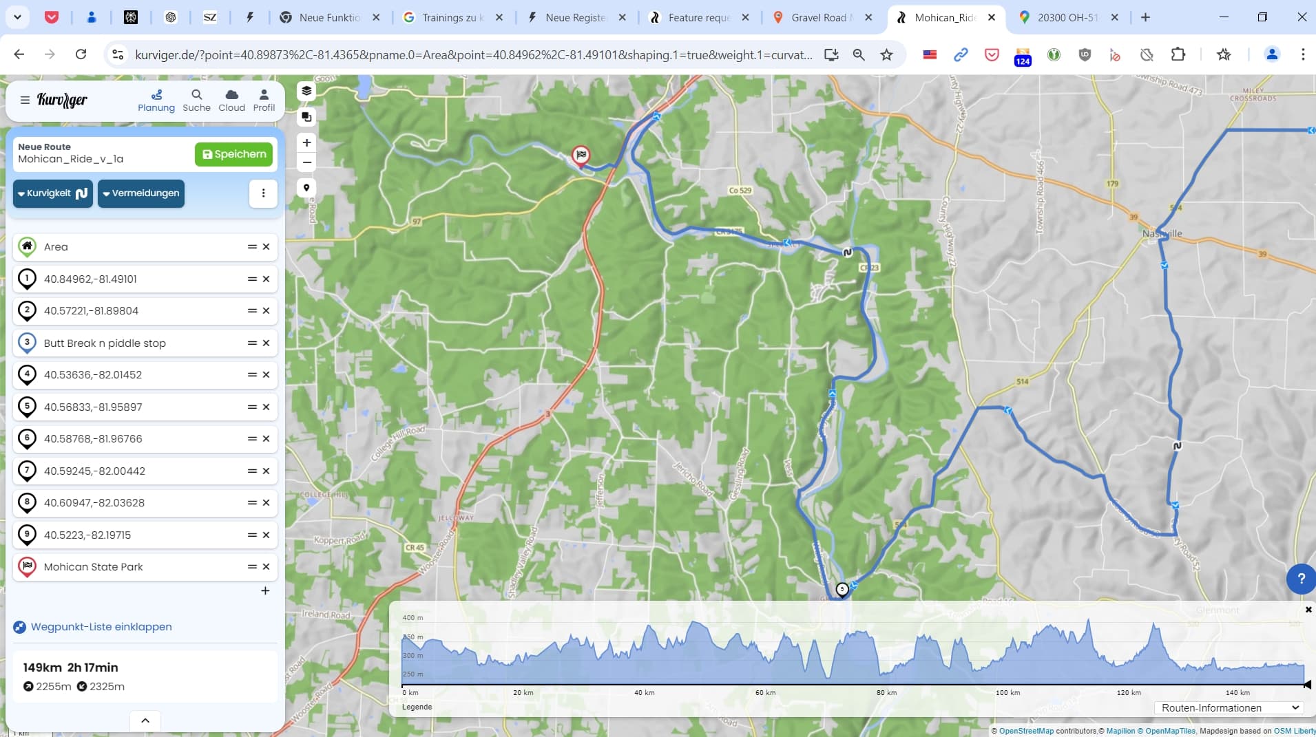 Earlier this week I was creating a route to Mohican State Park.