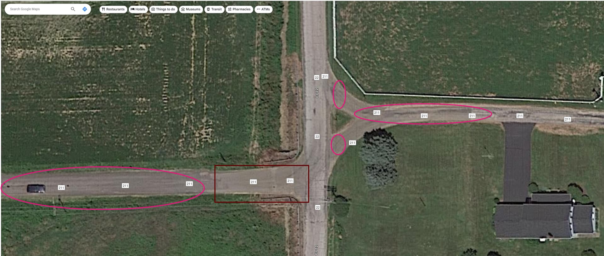 the assumption that 211 is a gravel road is further bolstered by looking at the street view of 211 on the right side of road, one can see the loose gravel.