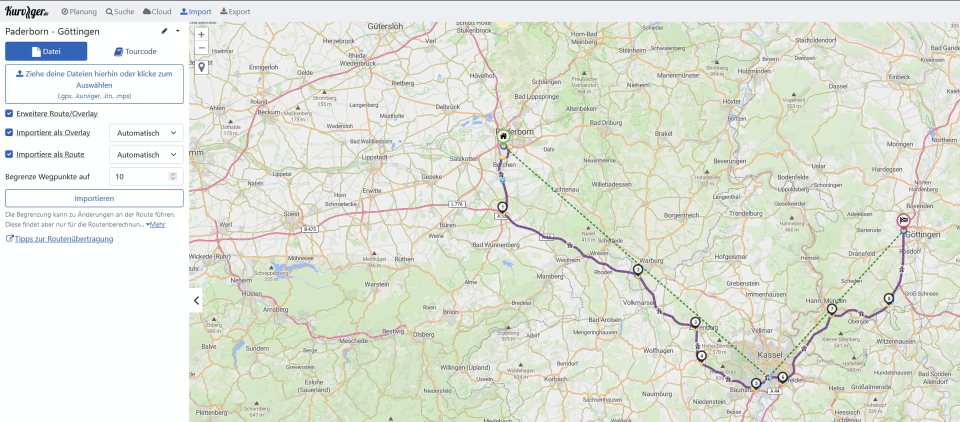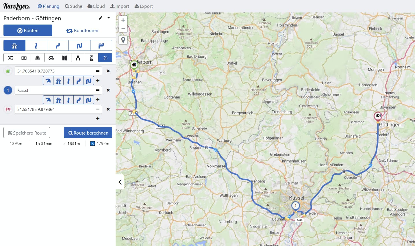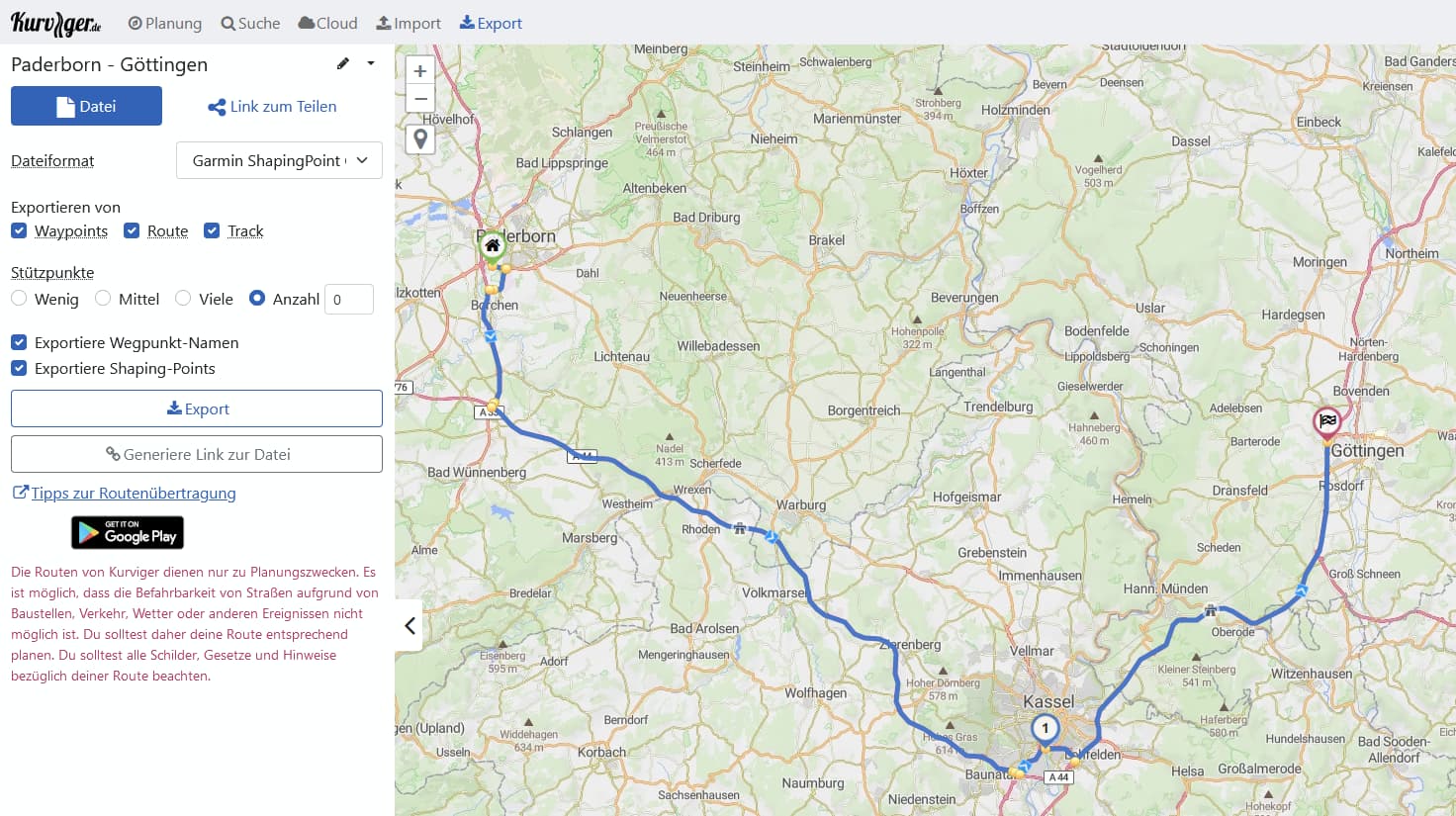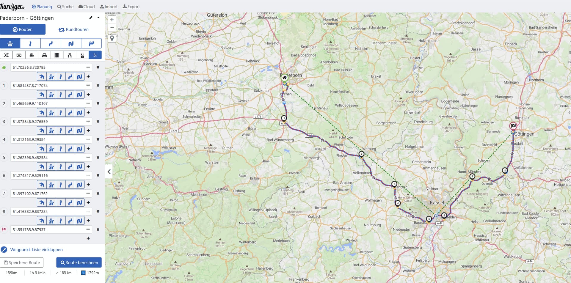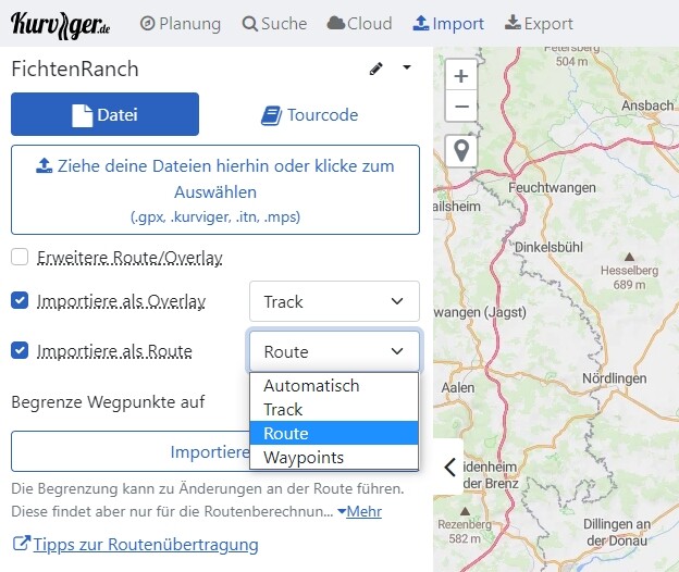 A re-import is only working, when you use the own kurviger format. If you export it into a gpx file and DID the waypoint naming within kurviger, export it as gpx file and import it again, kurviger skip, forget or even don’t care about individual waypoint naming and show only coordinates on each waypoint again - so all work is gone.