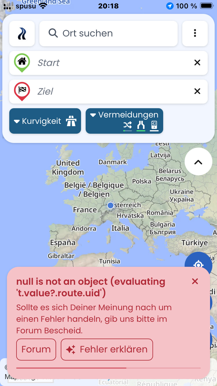 Ich komme grad von einer vorab geplanten und dann navigierten Tour zurück (bei aktivierter Aufzeichnung). Jetzt habe ich bei meiner Rückkehr die Route beendet aber es ist dann eine Fehlermeldung gekommen. Die Tour liegt nun leider nicht im Ordner aufgezeichnete Touren. App geschlossen und wieder geöffnet und die Fehlermeldung kommt wieder. Jedesmal beim Öffnen der App kommt nun diese Meldung und die Tour ist noch immer nicht gespeichert. Was kann ich machen das ich einerseits die Tour im aufgezeichnet Ordner finde und andererseits die Fehlermeldung nicht mehr kommt?