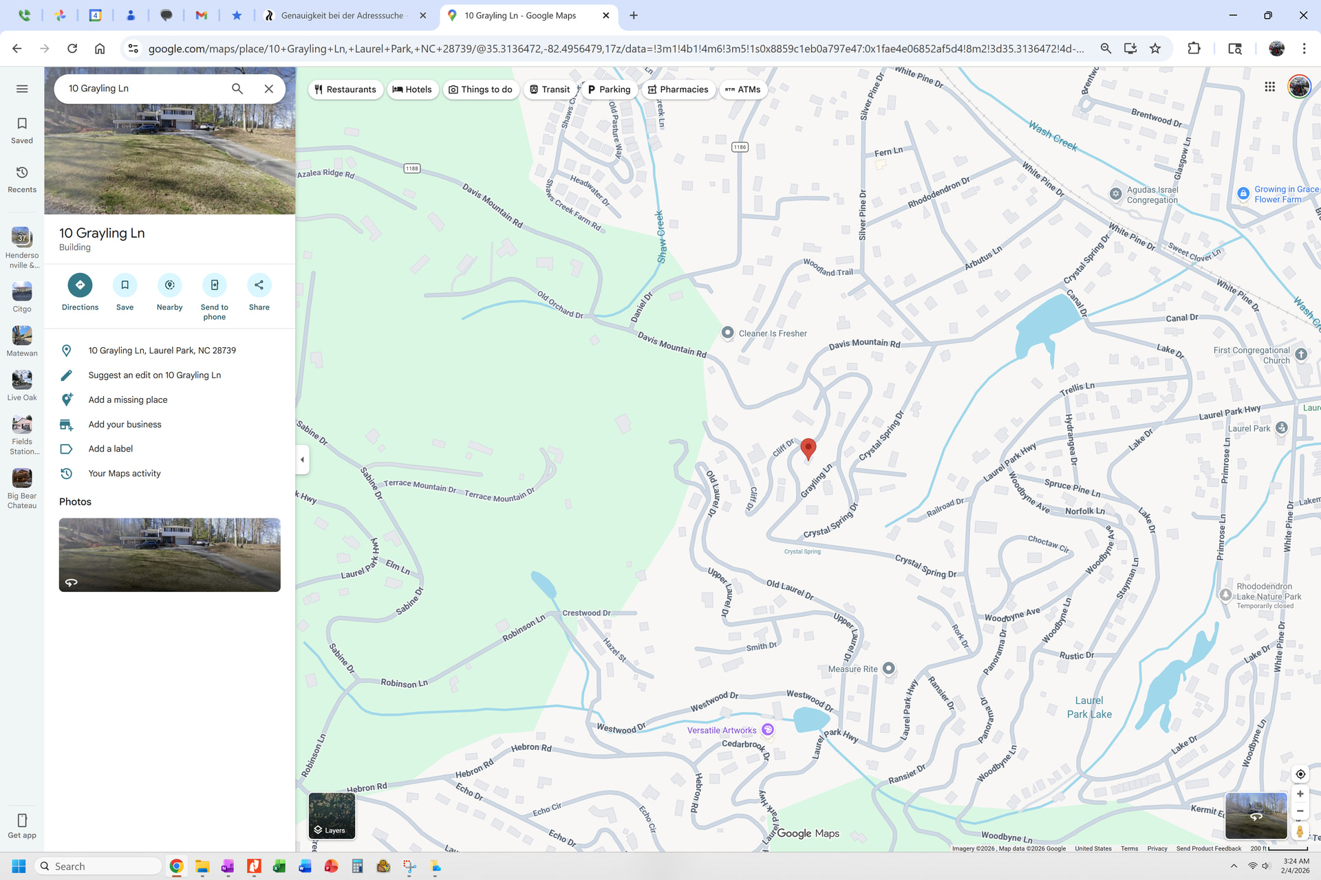 Here’s a randomly selected house near me in Hendersonville, NC: When I enter “10 Grayling Ln, Laurel Park, NC 28739”, I get only the street followed by a nearby completely different street followed by three places not in the US at all…