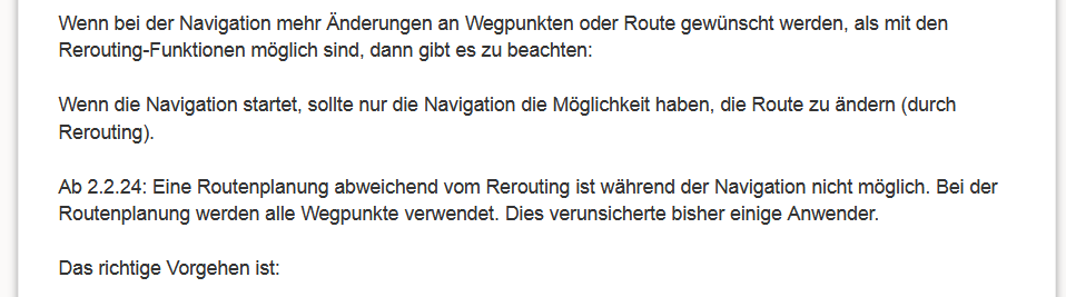 Wie man vorgehen muss, um bei eingeschalteter Navigation die Route durch hinzufügen, löschen verschieben von Wegpunkten zu ändern, ist in folgendem Abschnitt beschrieben: