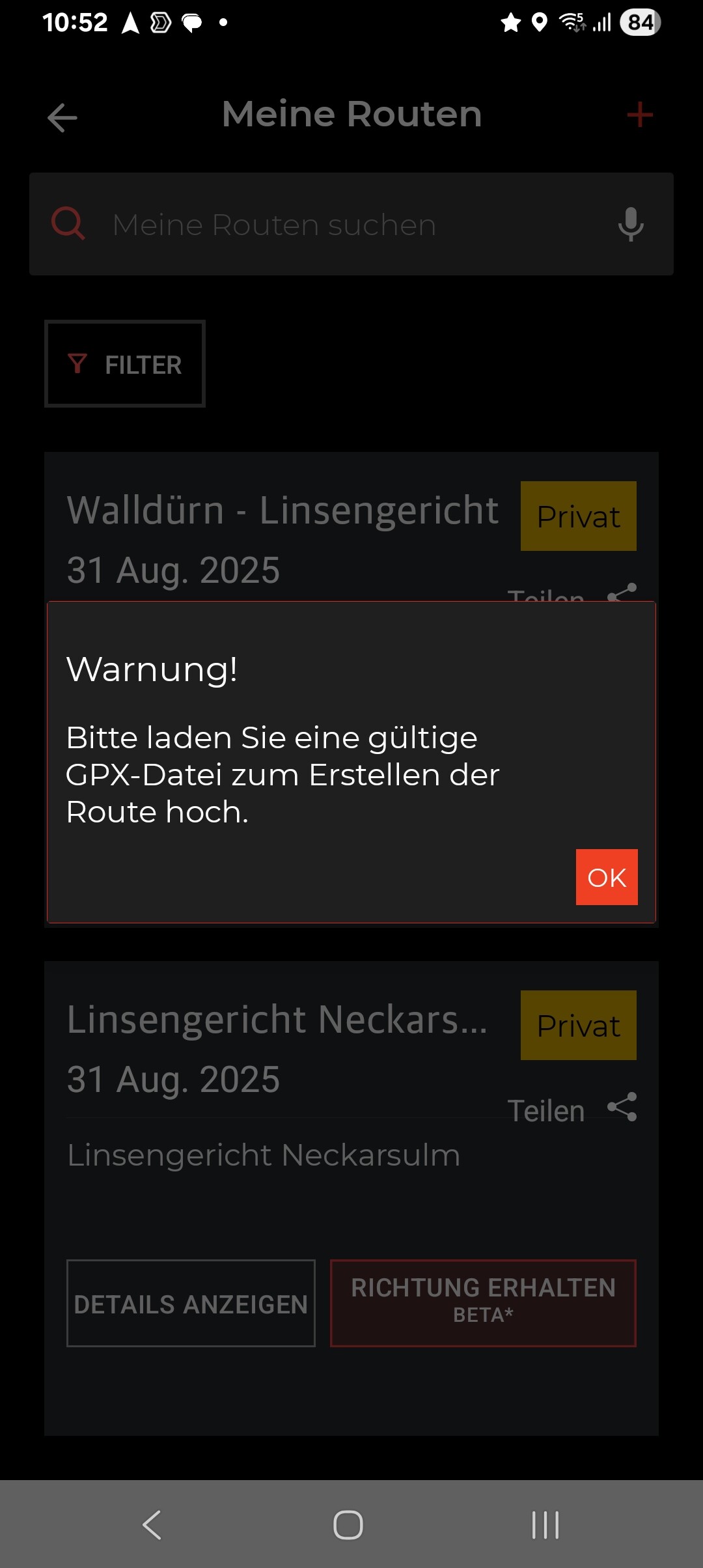 Was mich eben irritiert hat, ist, dass der Import von GPX Dateien aus anderen Apps funktioniert, aber nur die aus Kurviger (was nach langen und vielen Tests mein absoluter Favorit ist) eben nicht.
