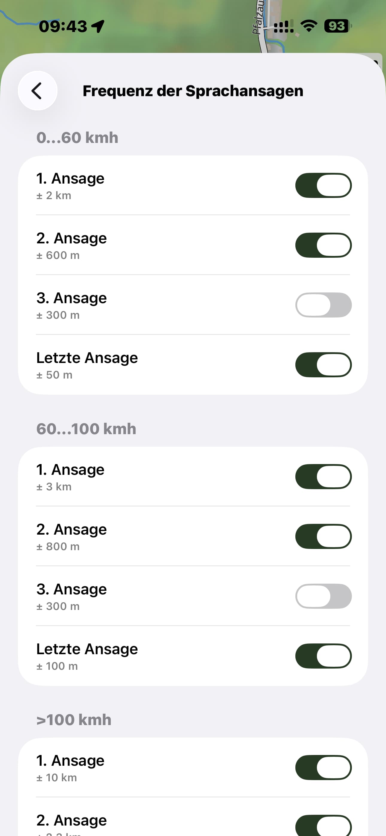 ist es angedacht, die Häufigkeit der Navigationsansagen (z.B. vor dem Abbiegen) steuerbar zu machen? Ich finde die Lösung bei Scenic (siehe Bild) sehr gut, wo man abhängig von der Geschwindigkeit die Häufigkeit und Entfernung für die Ansagen anpassen kann. Ich brauche nicht 3 Hinweise vor einem Abbiegen…