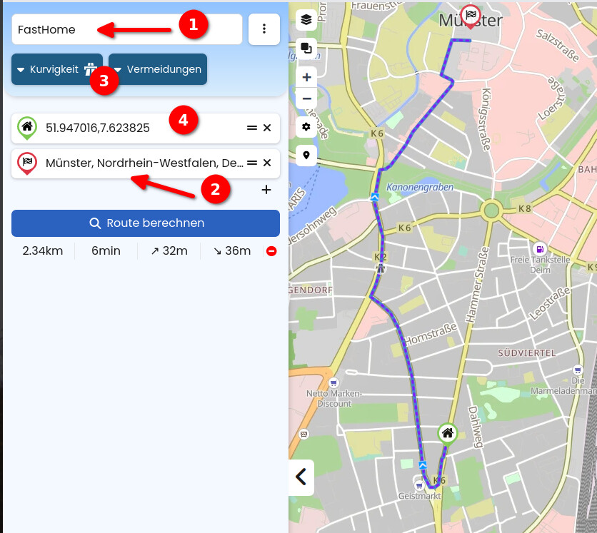 To select the favorite, type the name, e.g. “Home”, into the search field and add it to the route by tapping “Add to route”. That’s it.