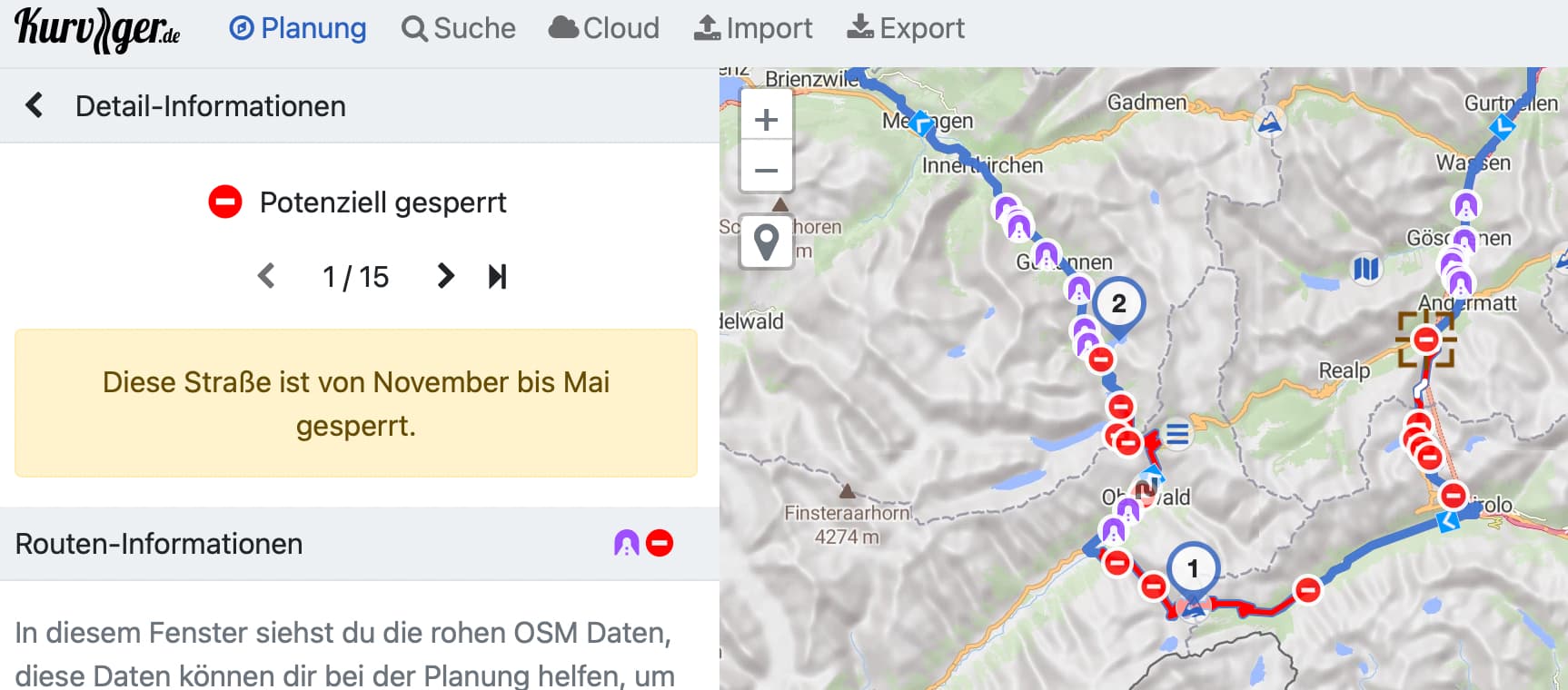 Thank you to Hobbyfahrer, i know what you mean. Im a Newbie in “Kurviger” and for me this notice looks like the road is maybe closed bcs its under maintenance? What i miss is more infos with that notice. Hope you understand what i mean, my english is not the best;)