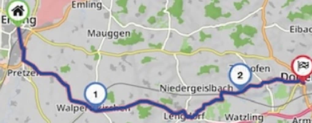 So wie Kurviger Routen Zwischenziele haben können, können auch GPX und KML Routen Zwischenziele haben.