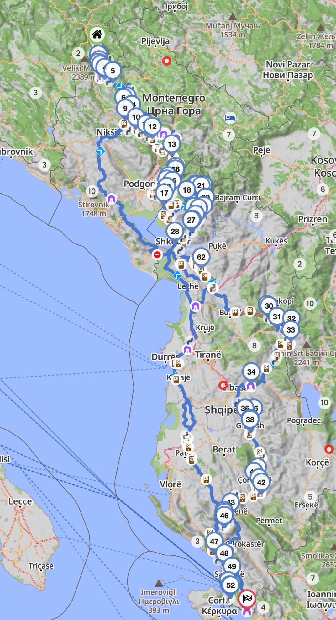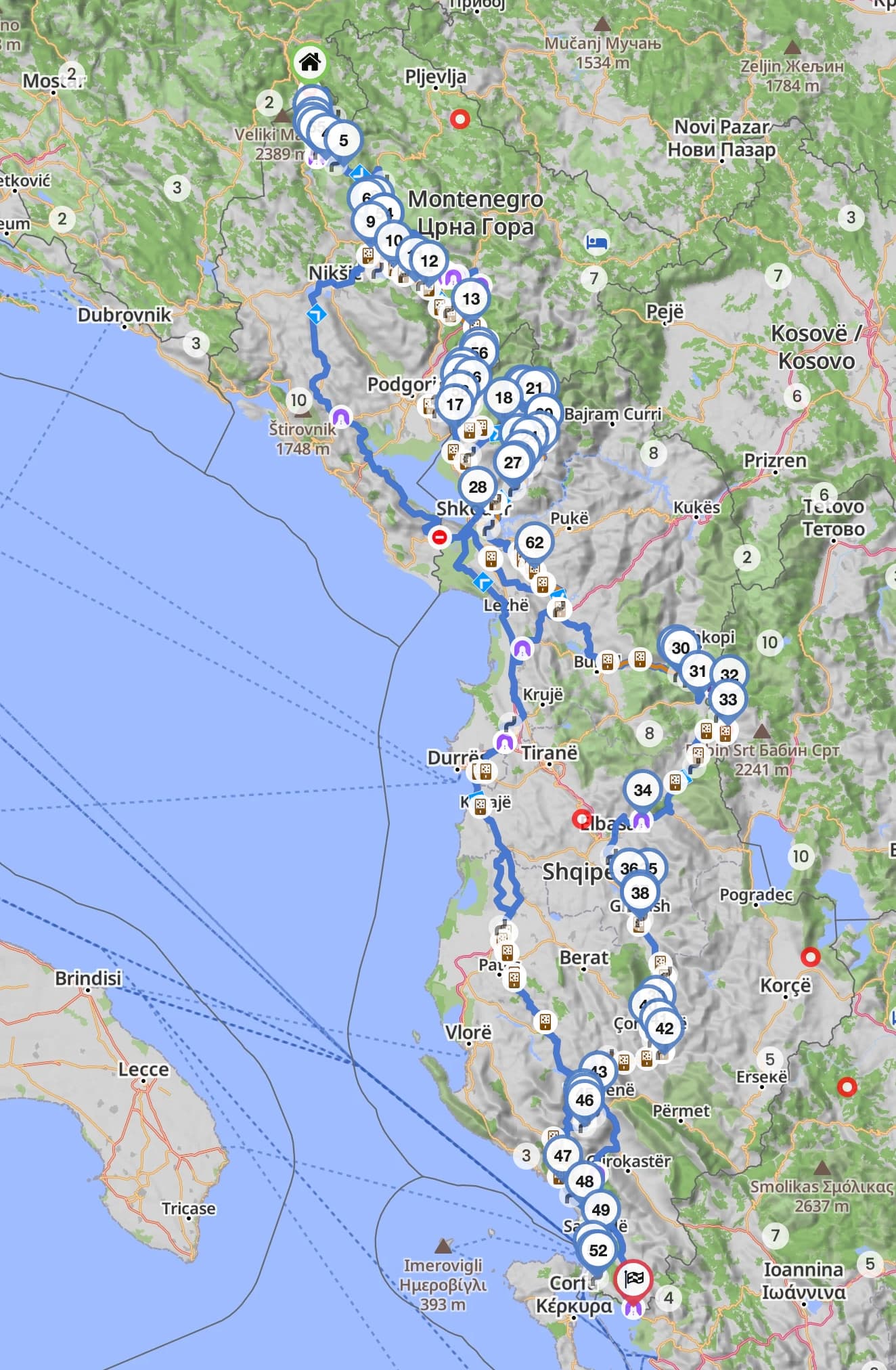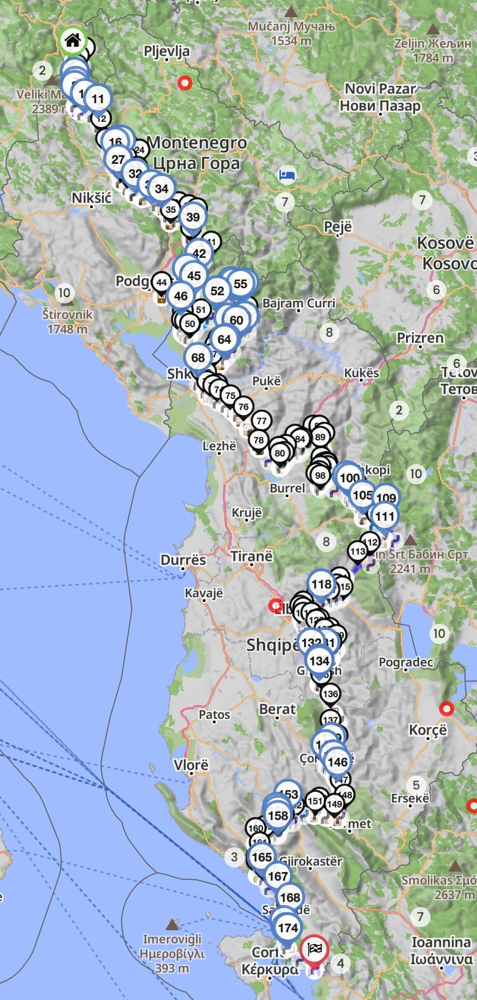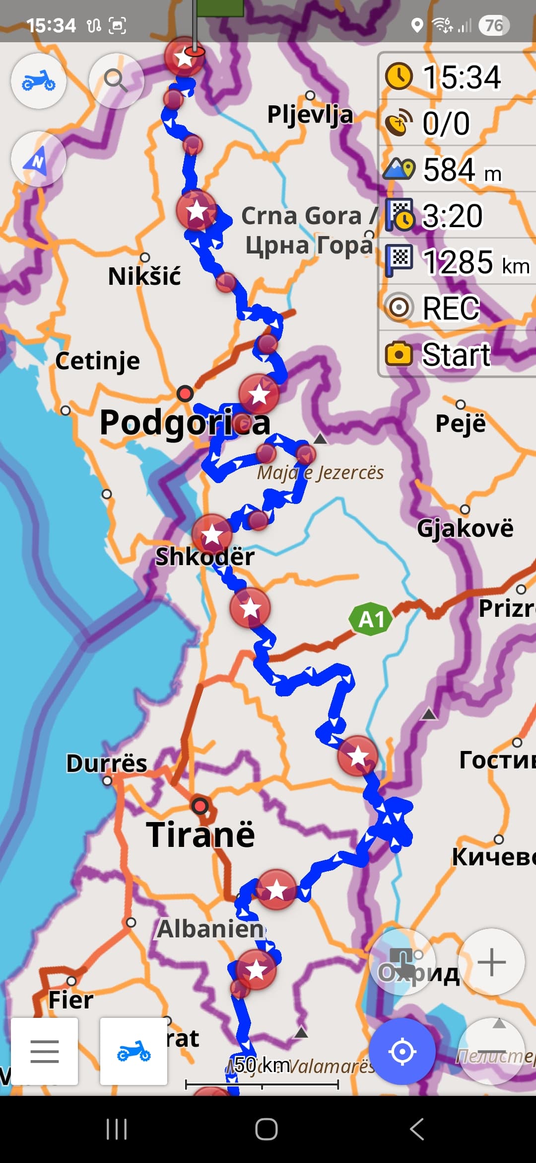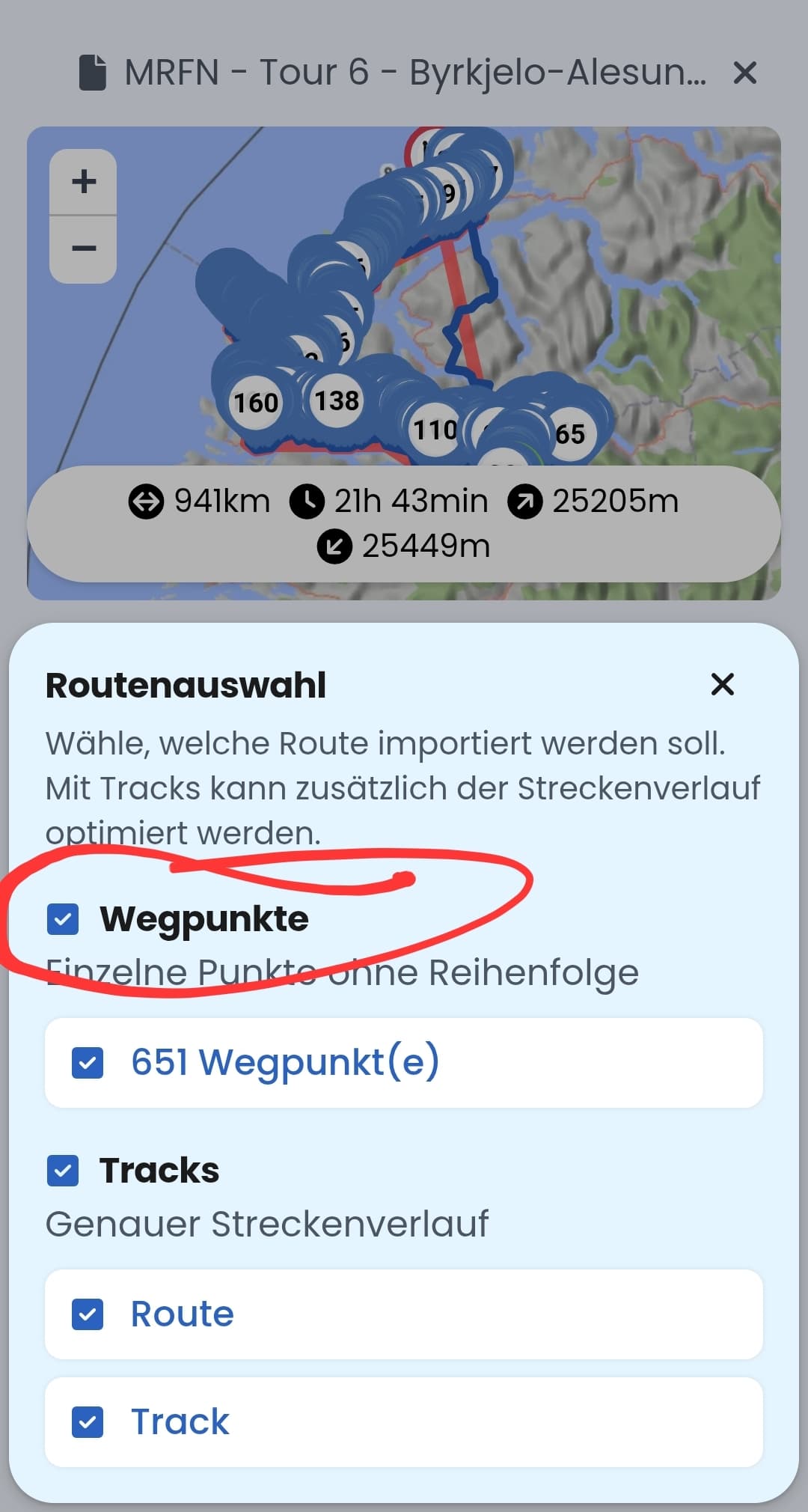 Habe diese Kurviger Route als GPX Track mit Zwischenzielen