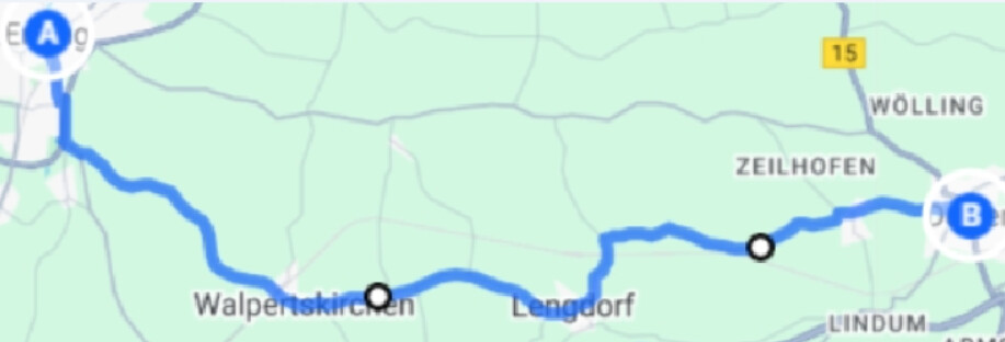 Hier eine ganz einfache .klm Datei: Route von Erding nach Dorfen.kml (23,2 KB) die sich allerdings nicht importieren lässt.
