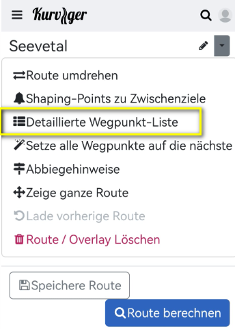 Ein Tipp auf “Detaillierte Wegpunktliste” im Menü hilft nicht.