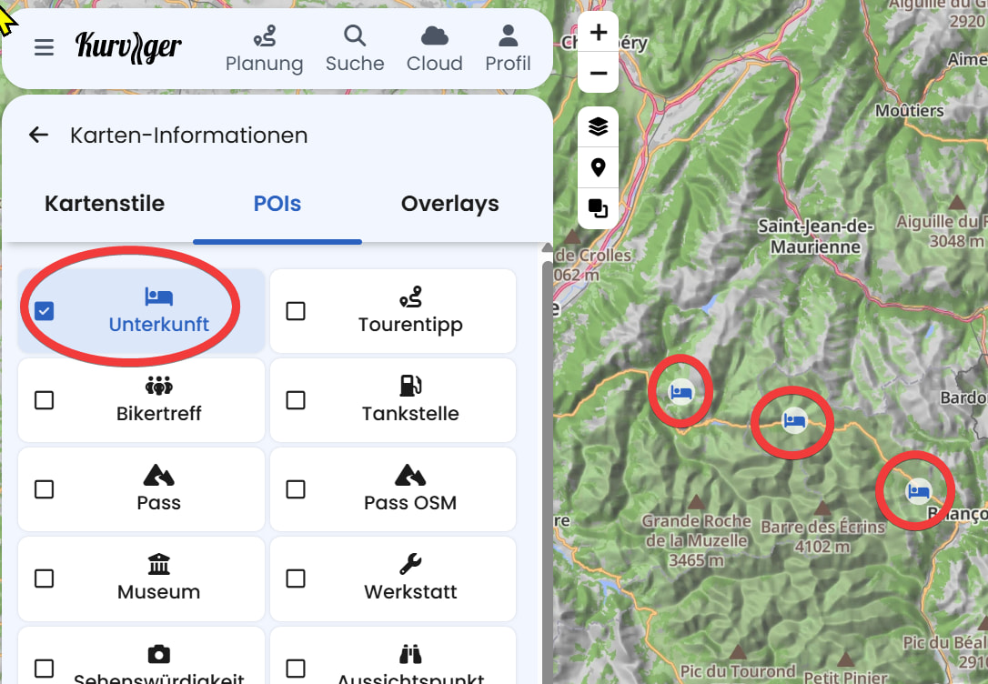 Habe Kurviger jetzt schon einige Monate nicht mehr genutzt und wollte nun den nächsten Jahresurlaub planen. Leider muß ich feststellen, daß mir - trotz aktiviertem POI - keine Hotels/Unterkünfte mehr angezeigt werden. Das ist reichlich unbefriedigend, da ich nun ständig zwischen Kurviger und Google Maps hin- und herspringen muß.