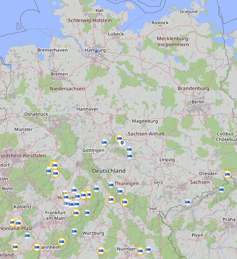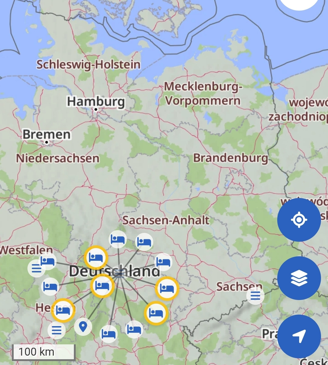 Das Komplettversagen der Unterkunftsanzeigen muß ich jetzt auch zurücknehmen. Ganz sporadisch (aber wirklich nur sehr sehr wenig) wird sogar mal ne Unterkunft angezeigt, aber da reden wir von absoluten Ausnahmefällen. Bundesweit kam ich da per grobem Überblick und ohne sie jetzt wirklich alle zu zählen, auf ein (gefühltes) Dutzend. So rar sind die. Wenn ich mich recht erinnere hatte ich auf meiner Strecke von der Mosel bis an die Ostsee ein, allerhöchstens zwei Hotel-POI.