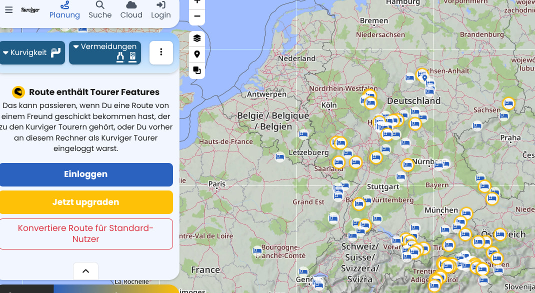 Daß Kurviger weniger Unterkünfte anzeigt, als Google Maps, ist mir bewußt. Dafür waren es aber oftmals auch welche, die bei Maps nicht angezeigt wurden. Geplant wird ausschließlich in Deutschland (bestenfalls noch ein grenznaher Randstreifen BeNeLux). Es hat sich also in der Nutzung oder der Peripherie absolut nichts geändert.