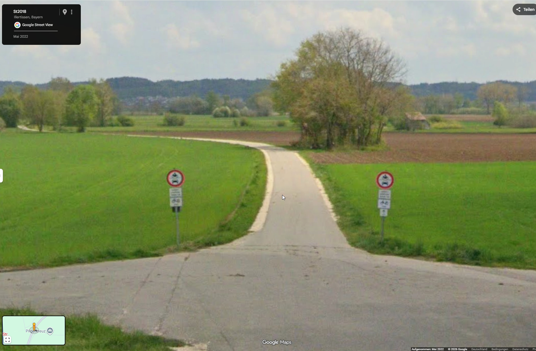 Man sieht die Beschilderung zu Beginn der Strasse (aus Richtung ST2018) ebenfalls in Google Street View