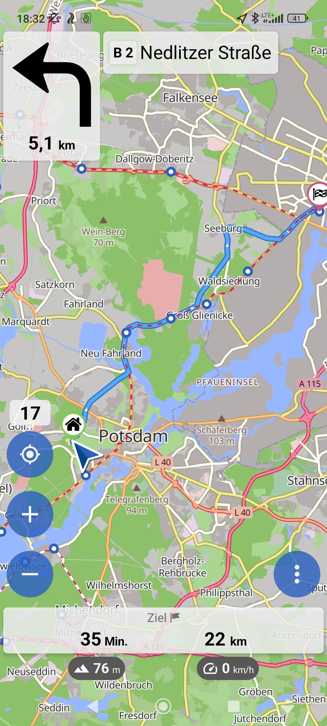Ersten Stopp nach ca. 1/3 des Weges in Bad Belzig gemacht und App ausgeschaltet um Strom zu sparen.