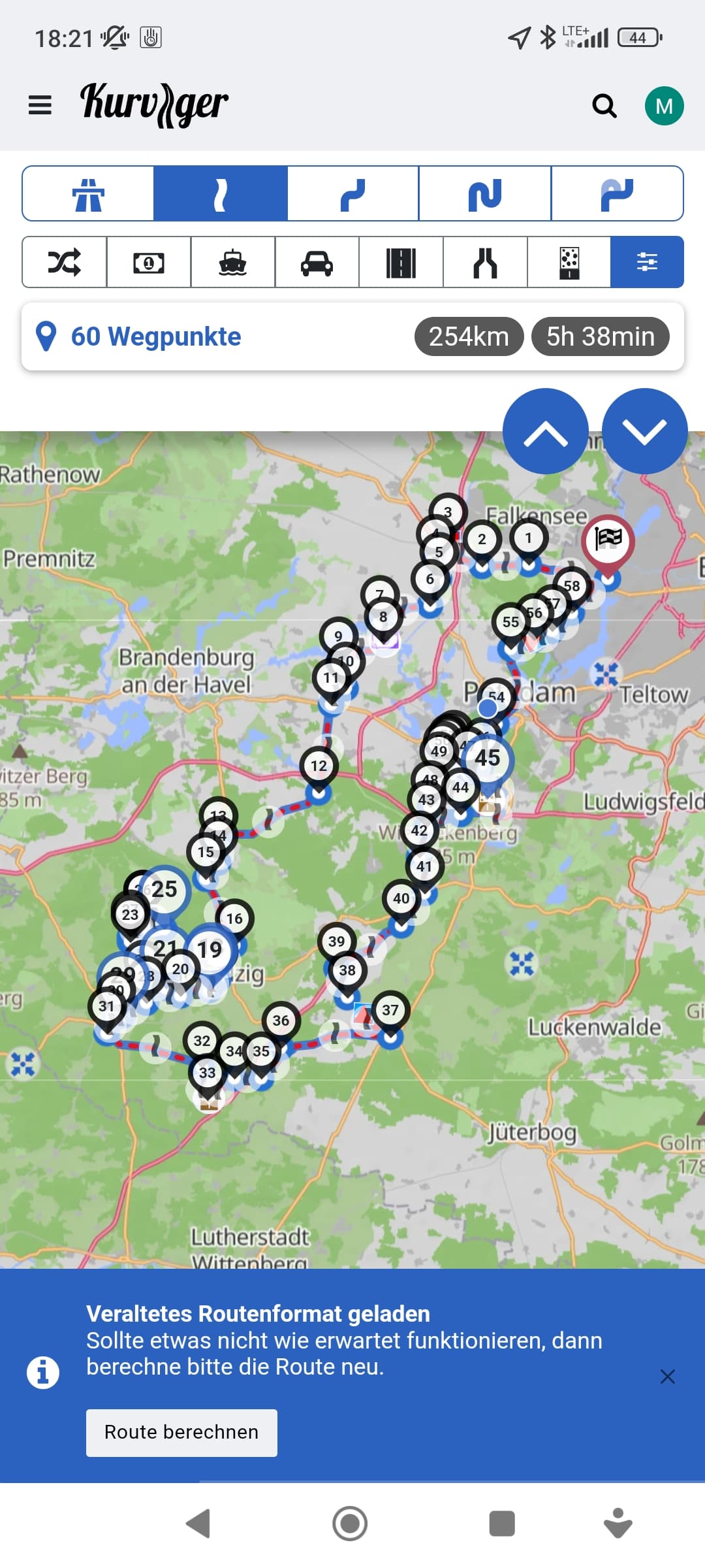 Hast Du einmal versucht, die Route aus dem ‘alten’ Kurviger Format im ‘neuen’ Kurviger Format zu speichern? Also nach dem Import Deiner bestehenden Route diese einfach in der neuen App einmal abspeichern und erst dann abfahren?