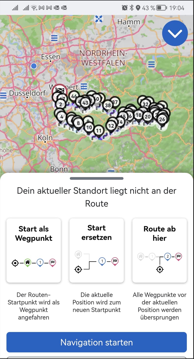 Habe ich genau so gemacht. Habe sogar die Route mehrmals neu geladen und sogar die App neu installiert. Immer musste automatisch die Route neu berechnet werden
