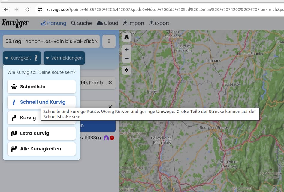 Daher ist es für mich essentiell, die Einstellungen so justieren, dass die Strecke weitestgehend meinen Ansprüchen gerecht wird. Daher lese ich dieses Thema sehr aufmerksam und da wurde einmal angemerkt, dass “schnell und kurvig” Autobahnen vermeidet, was mein Beispiel eindrucksvoll wiederlegt hat.
